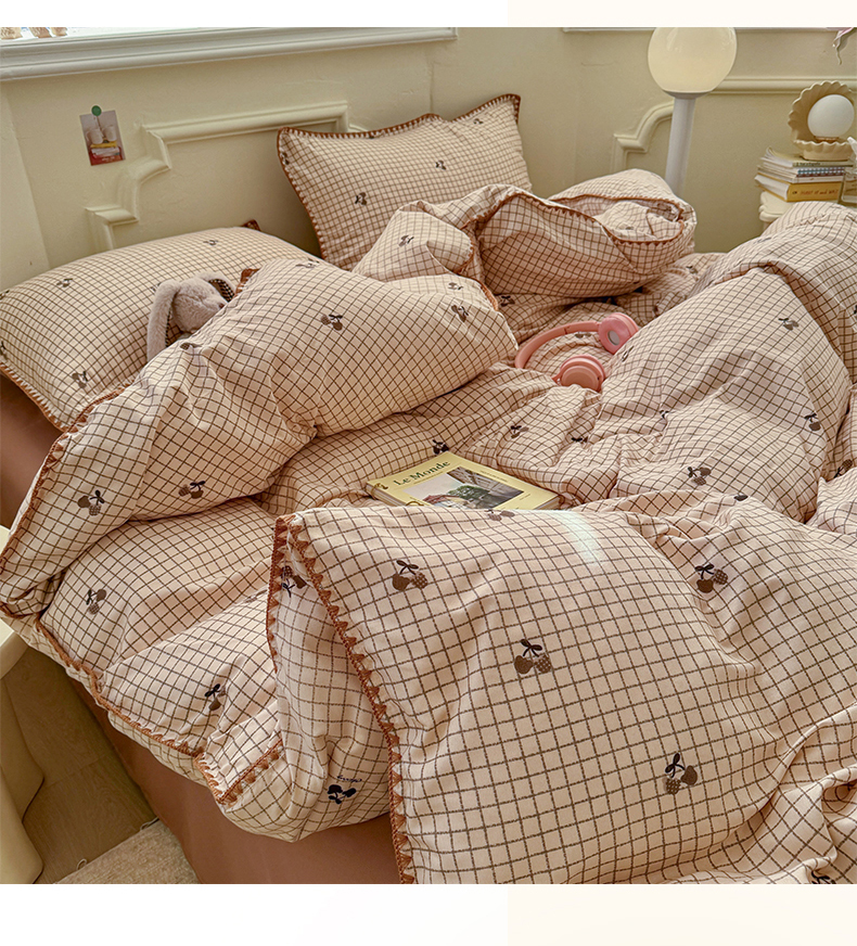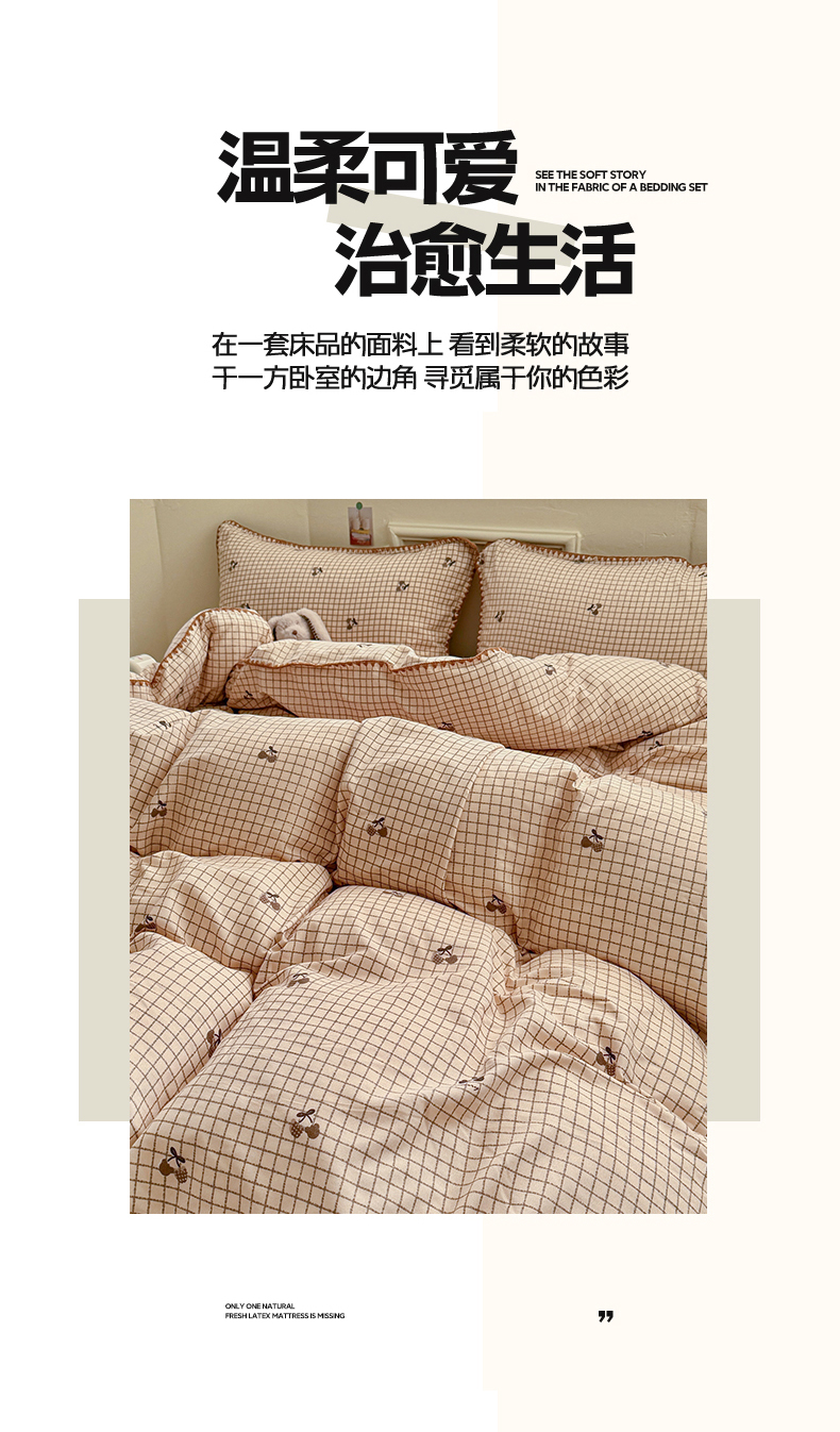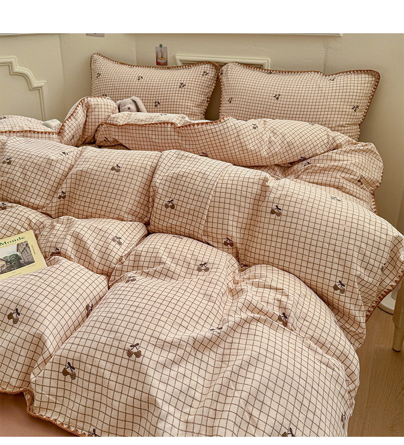 商品名称:韩都家居2025新款水洗双层纱针织棉三角针四件套(包含买家秀) 巧克力