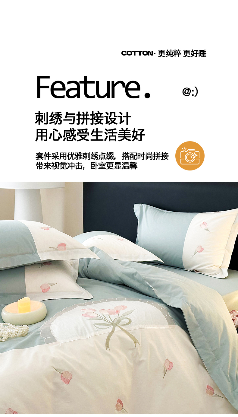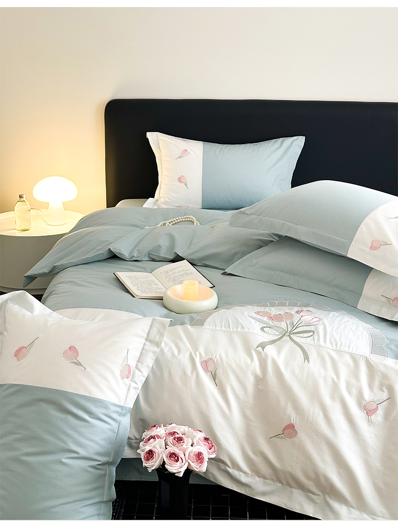 商品名称:典曼家纺 2025新款A类拼接刺绣四件套-帕兰朵 帕兰朵-兰
