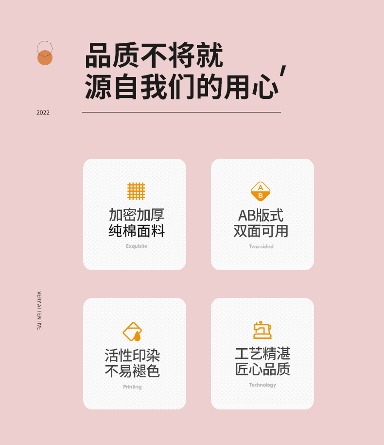 (总)艾唯希家纺 2025新款全棉纯棉色织小提花工艺四件套-开心兔系列,开心兔-粉,开心兔-灰