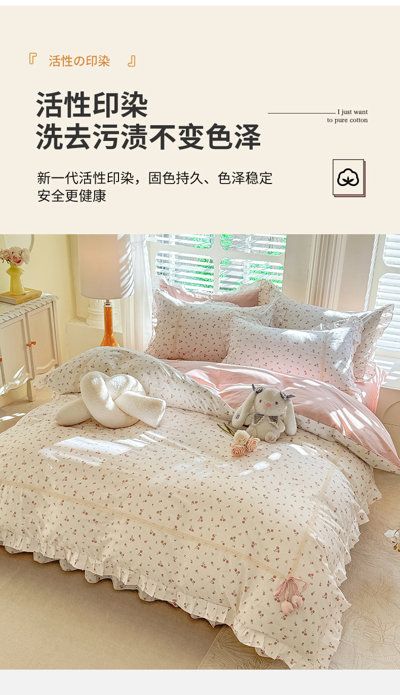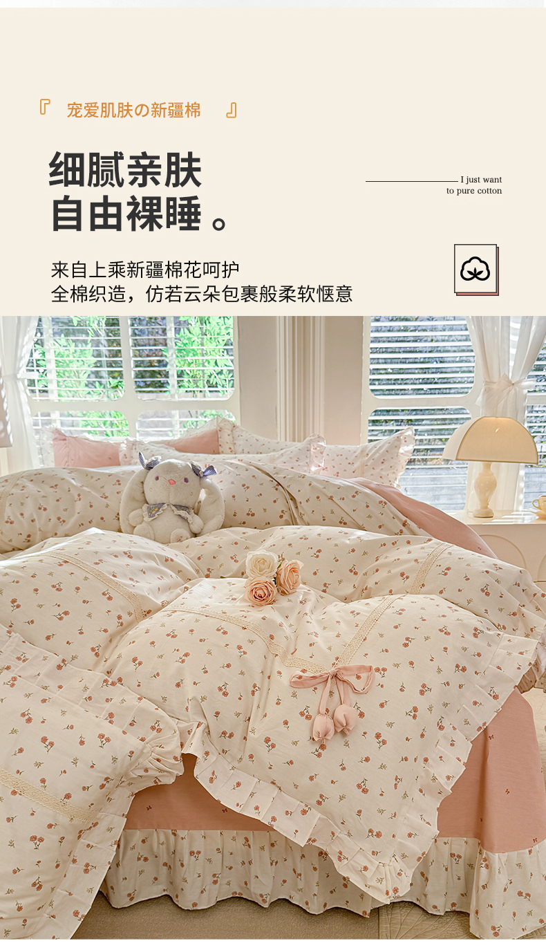 (总)艾唯希2025新款全棉小香风工艺四件套纯棉小花边碎花被套韩式公主风,初朵,春漾,漫丁蔷薇,觅秋,密玲花语,慕归十里,小青藤-米,小樱-咖,雅集,雅蔓花语,樱花,悠然雅居-粉