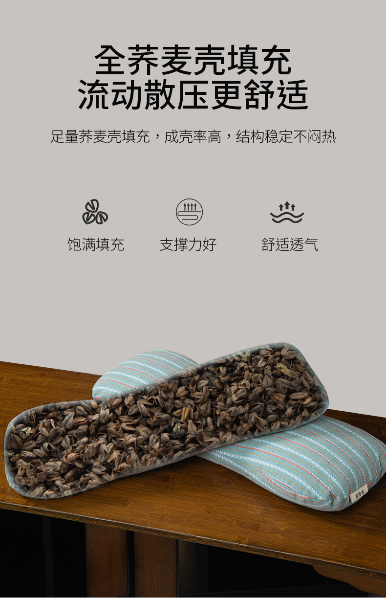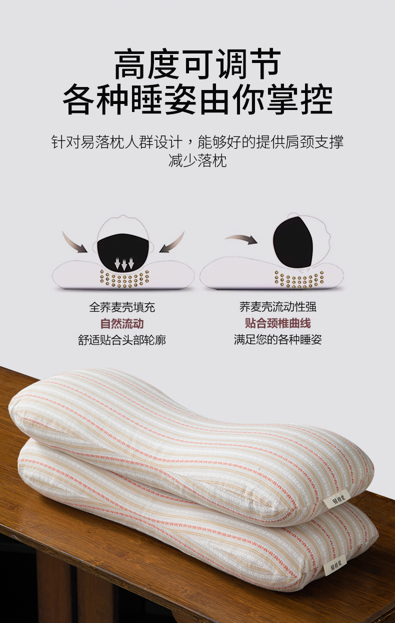 (总)仁宇枕业 2025新款新品全棉色织提花水洗棉条纹8字骨头护颈椎全荞麦枕头枕芯