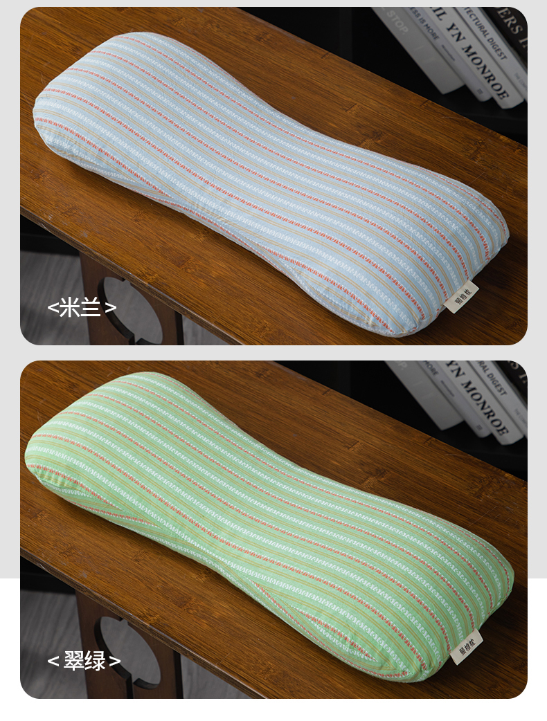 条纹8字荞麦枕-牛油绿色20*53 1/对