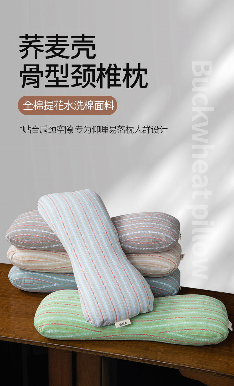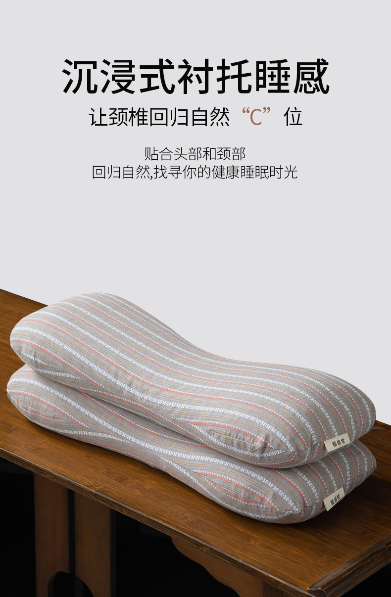 商品名称:(总)仁宇枕业 2025新款新品全棉色织提花水洗棉条纹8字骨头护颈椎全荞麦枕头枕芯