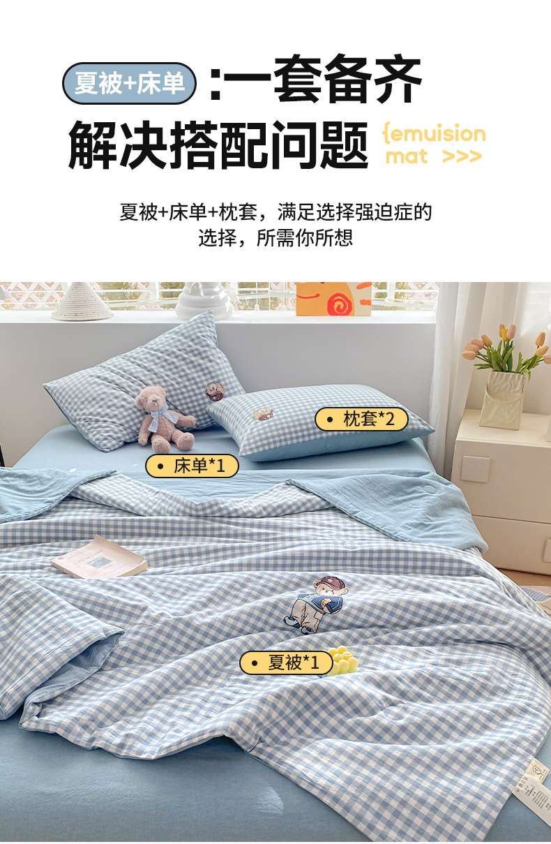 (总)其奥家纺 2025新款专版纯棉色织水洗棉刺绣全棉夏被四件套夏凉被,篮球小熊-细条灰,篮球小熊-条纹绿,篮球小熊-条纹粉,篮球小熊-格子蓝,篮球小熊-格子咖