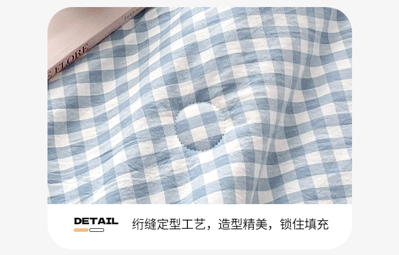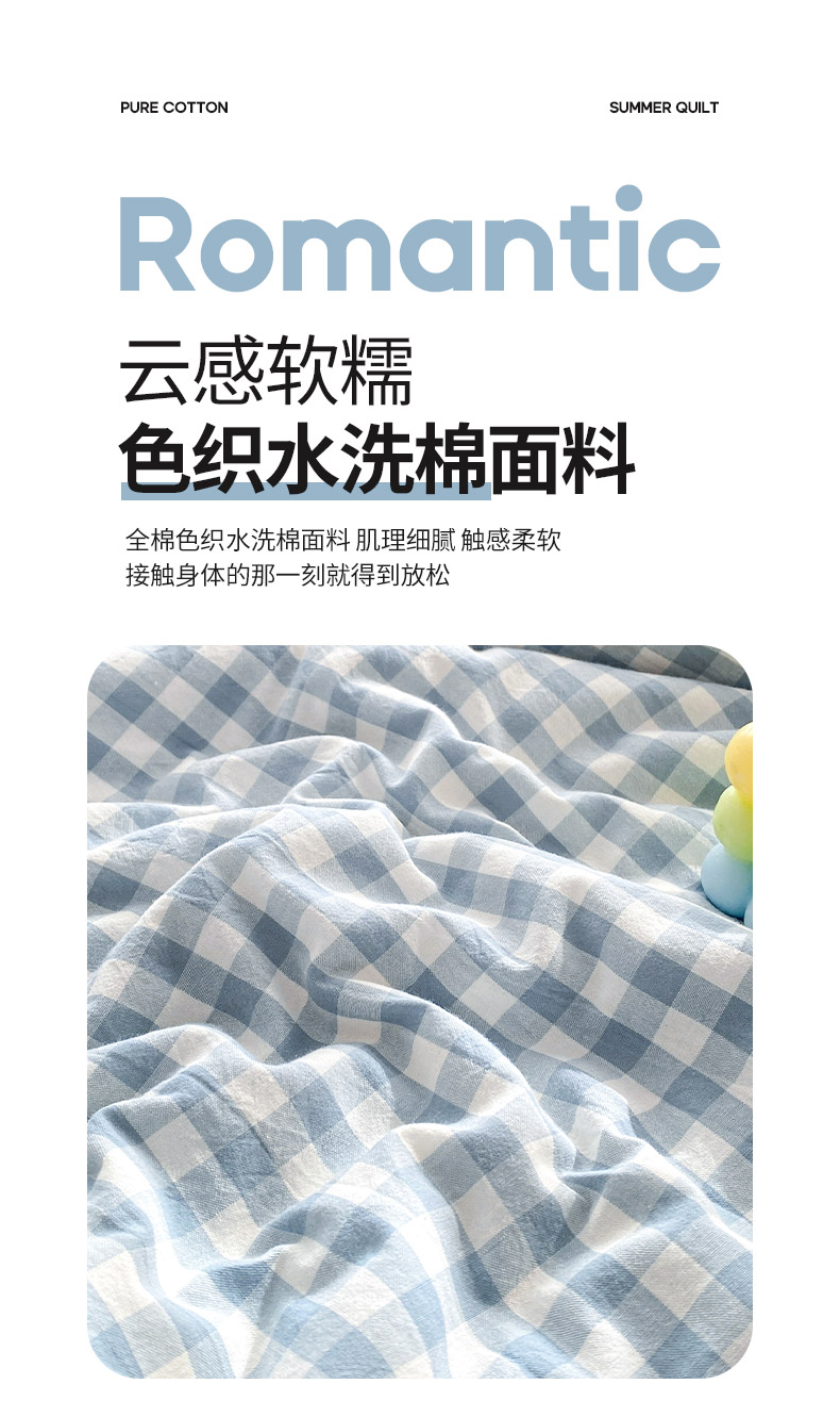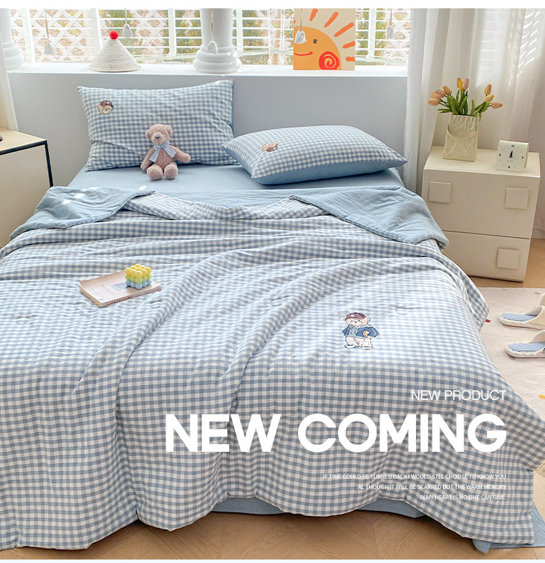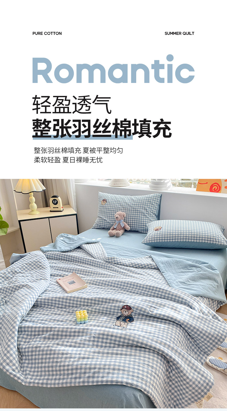 商品名称:其奥家纺 2025新款专版纯棉色织水洗棉刺绣全棉夏被四件套夏凉被 篮球小熊-格子蓝