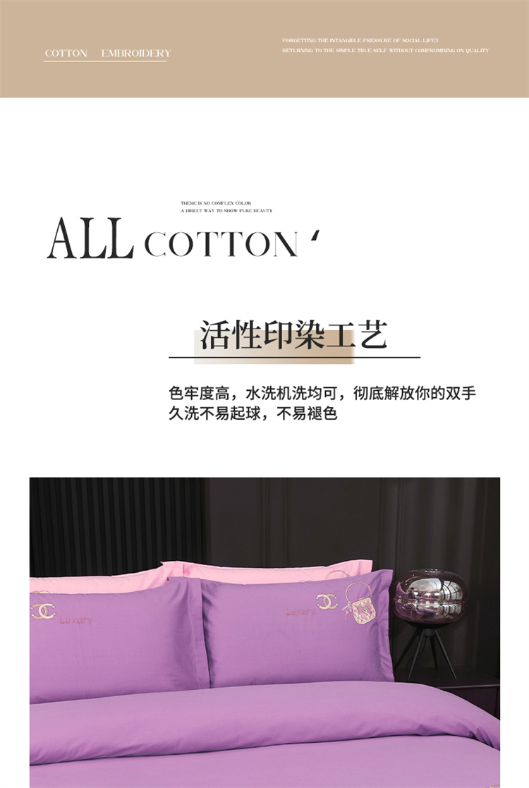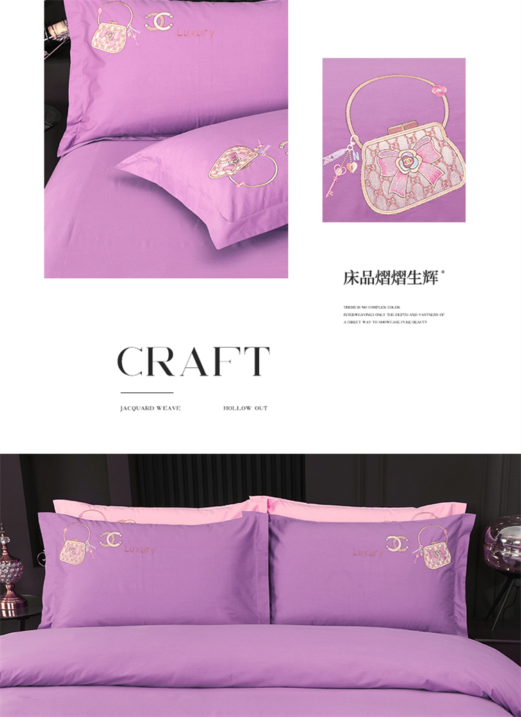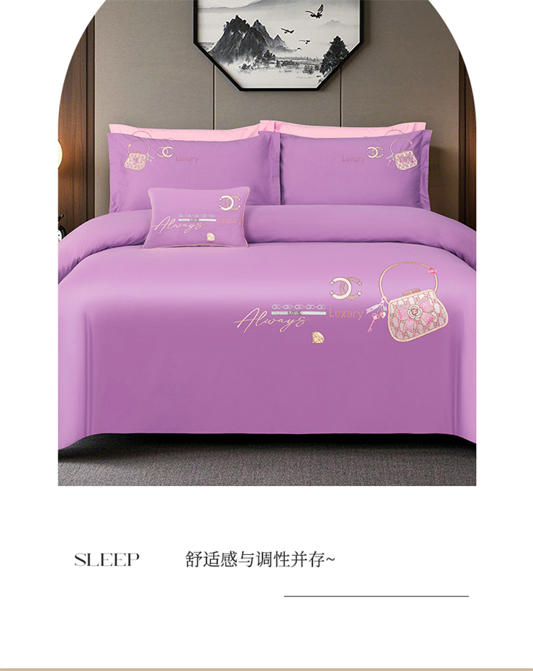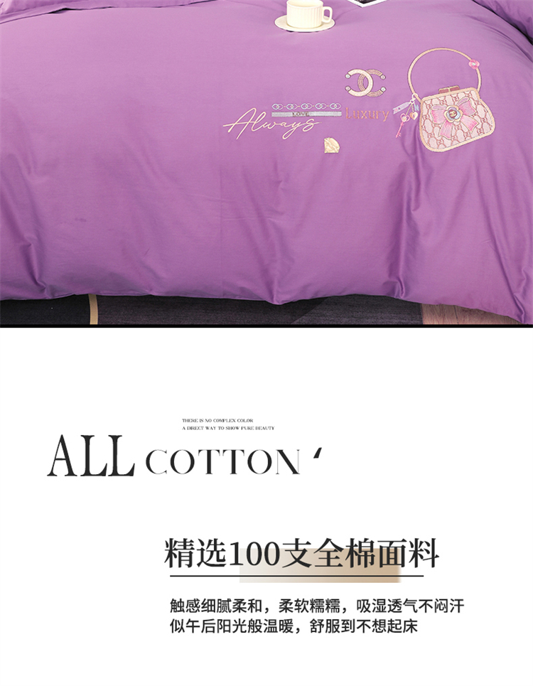商品名称:浩情国际婚庆供货中心 2026新款100支全棉高端刺绣中式风四件套--米尔顿系列 米尔顿-贵族紫