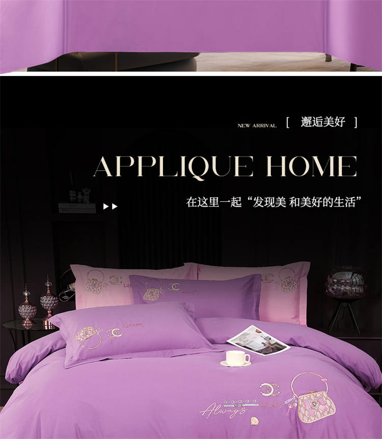 浩情国际婚庆供货中心 2026新款100支全棉高端刺绣中式风四件套--米尔顿系列 米尔顿-贵族紫