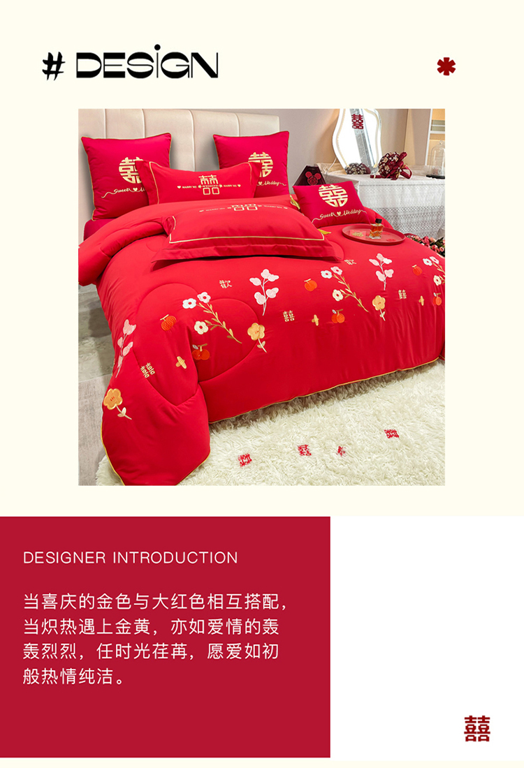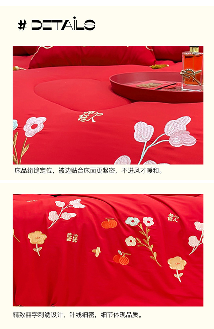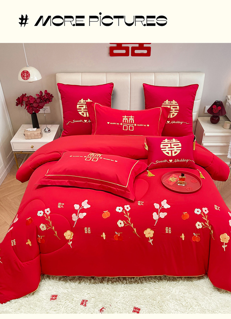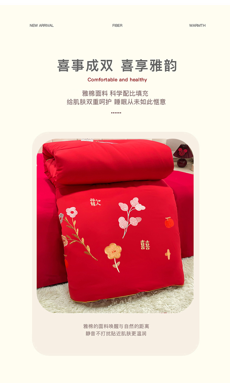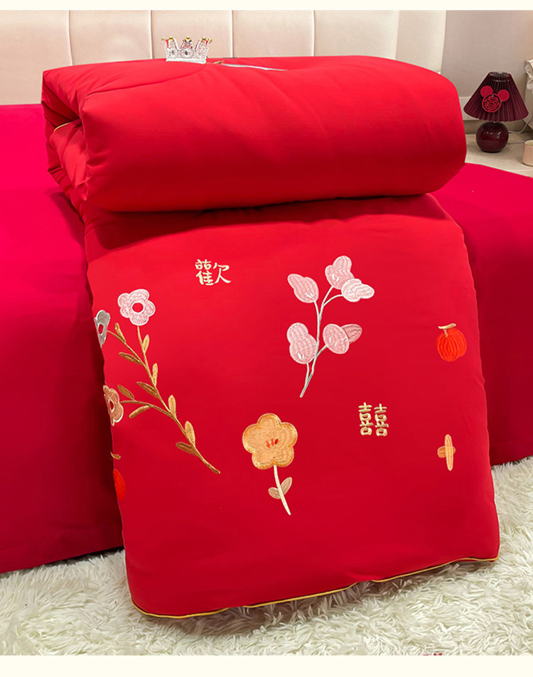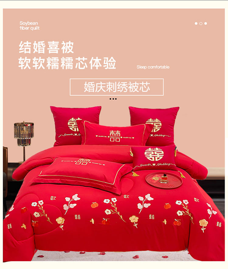 商品名称:甜咪咪婚庆 2025 新款居家婚庆刺绣结婚 春秋冬婚庆喜被 美滋滋红