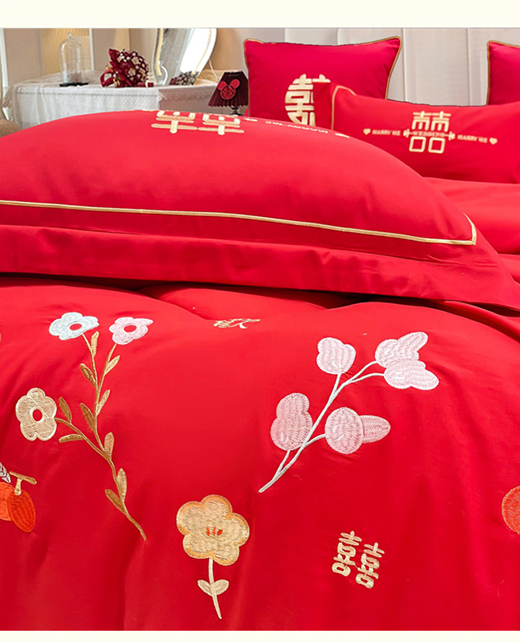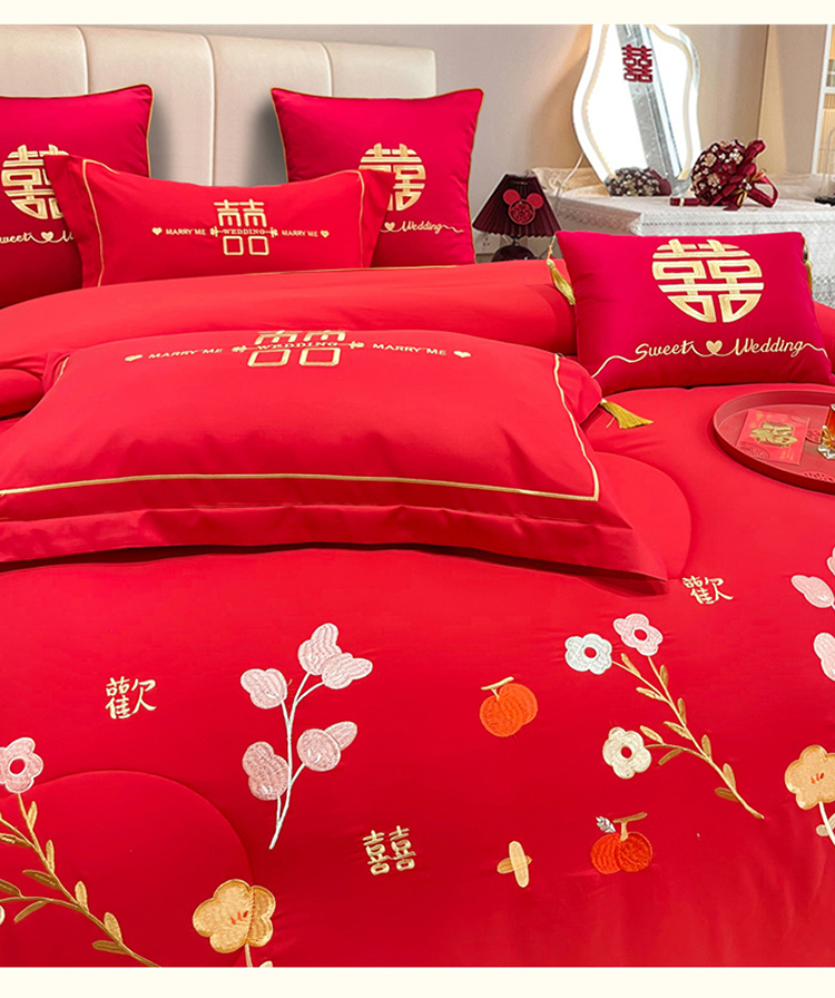 (总)甜咪咪婚庆 2025新款50支长绒棉全棉婚庆床单床盖四件套多件套刺绣工艺,洛可可,爱恋小熊,爱意久久,多子多福,花田喜事,节节高升,克拉恋人,浪漫情怀,怦然心动红,怦然心动玉,甜心玫瑰,温莎公主,伊甸园,醉红妆