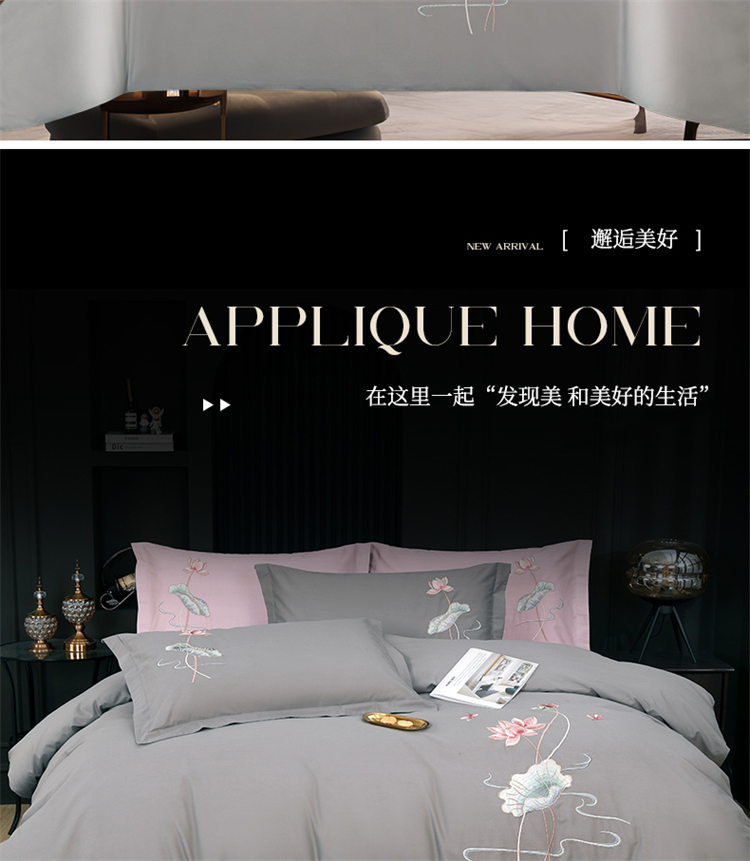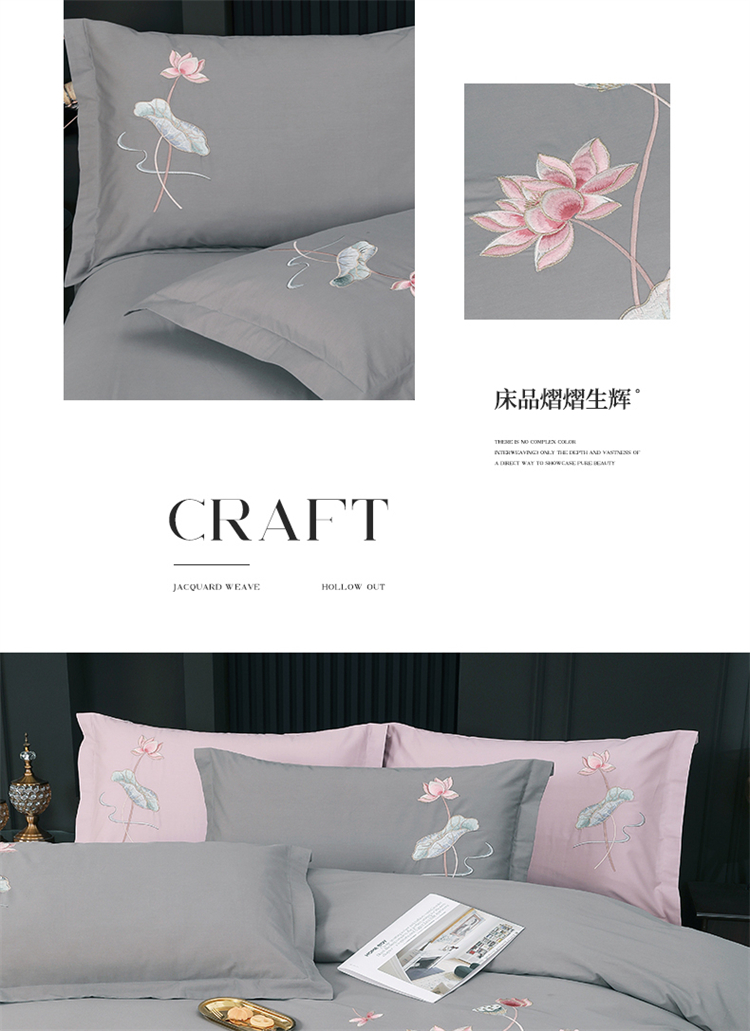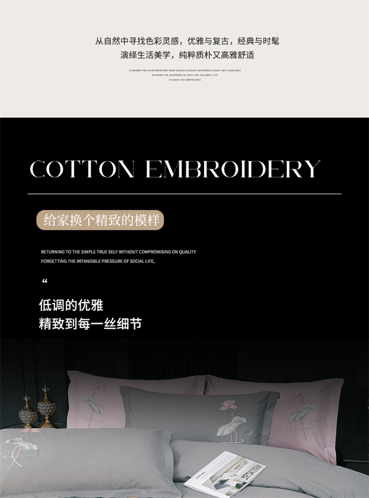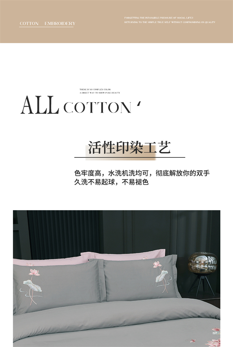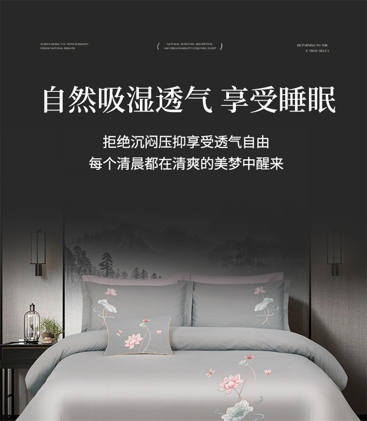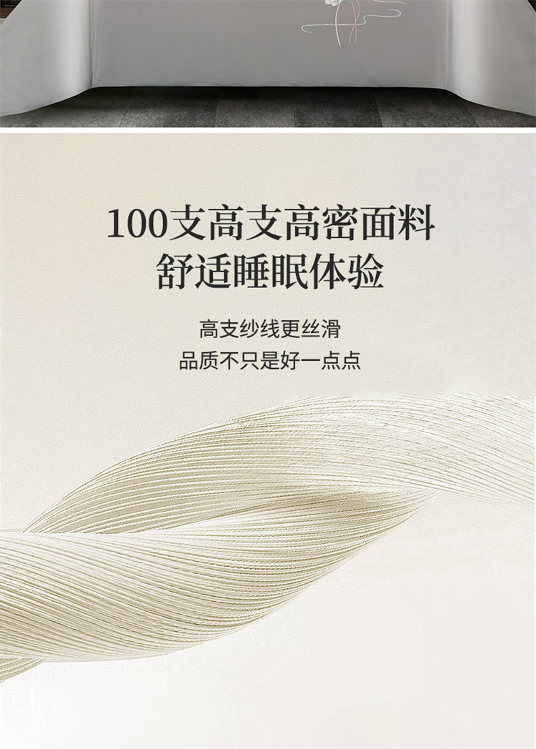 商品名称:浩情国际婚庆供货中心 2026新款100支全棉高端刺绣中式风四件套--好运连连系列 好运连连-金属灰