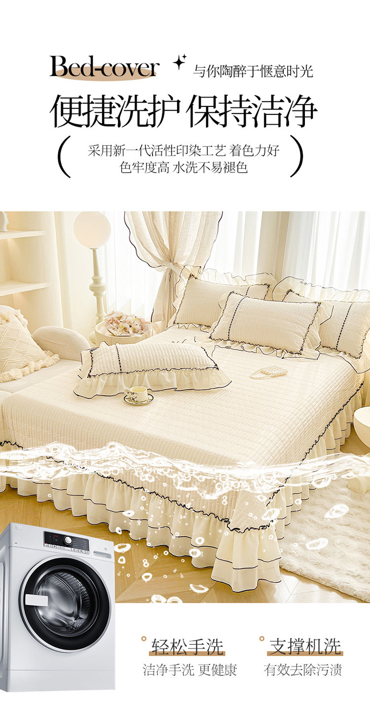 (总)虹星家纺 2024新款A类水洗棉四季款床裙系列套件-单床裙,湖水绿,抹茶绿,时尚灰,天空蓝,香妃玉,香蕉黄,香芋紫,樱花粉,云朵白