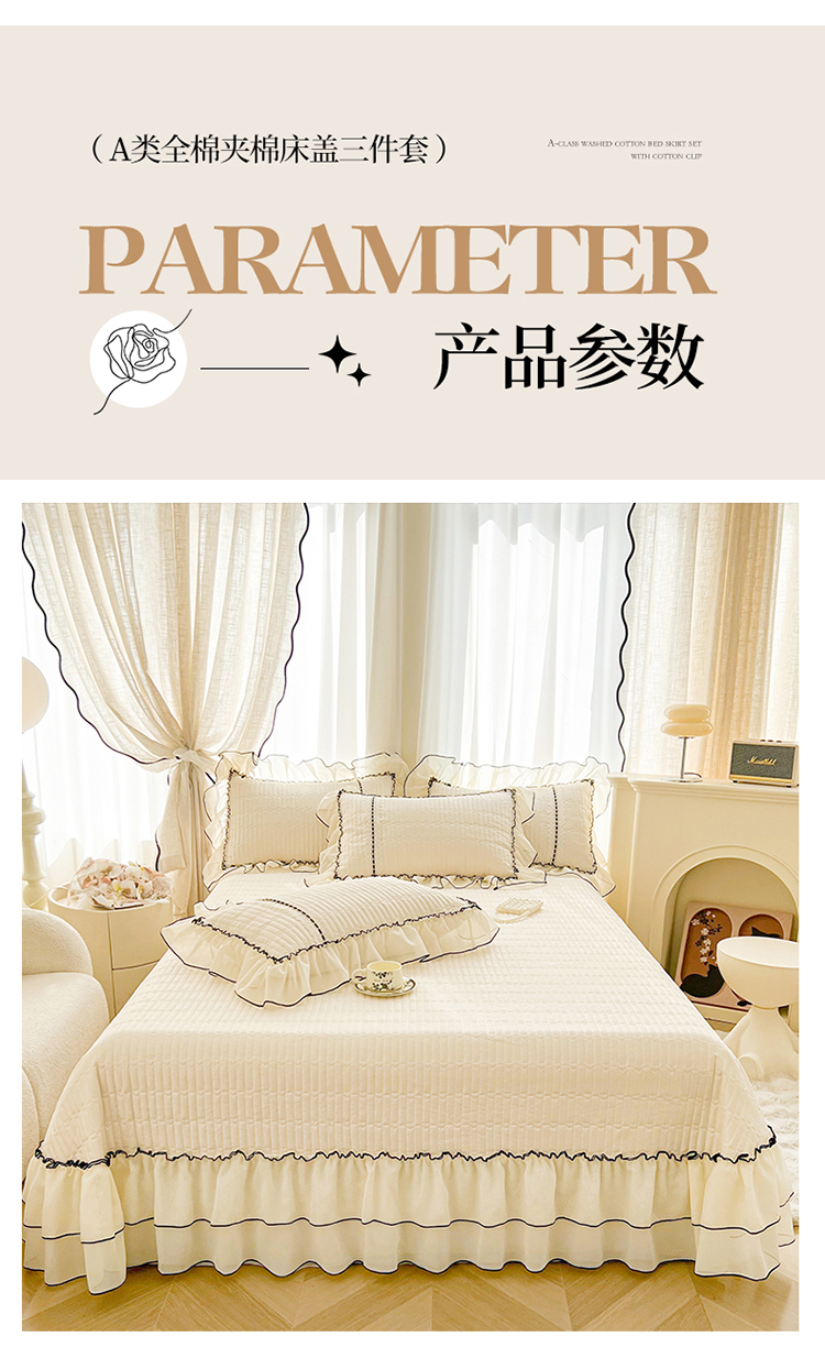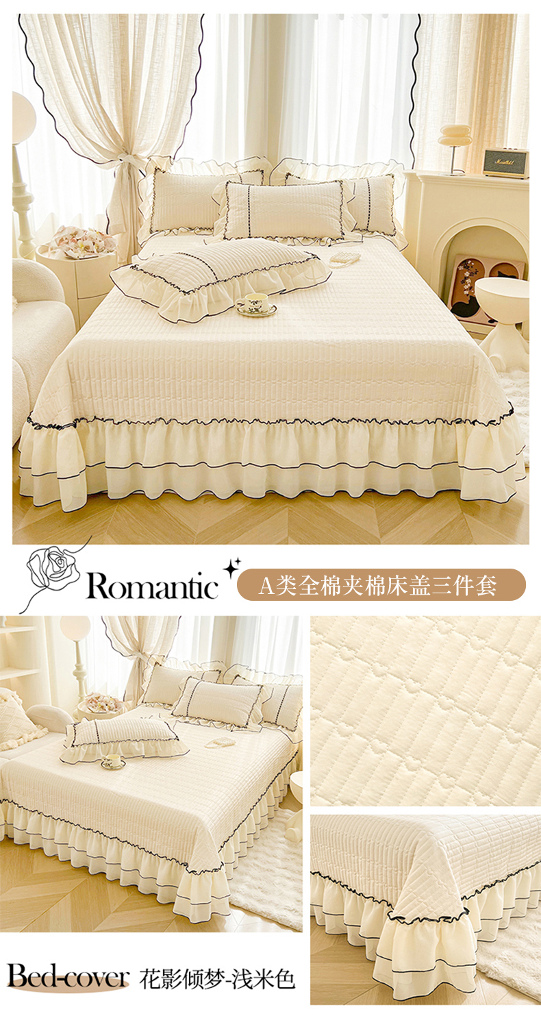 商品名称:虹星家纺 2025年新款全棉床盖三件套-花影倾梦 花影倾梦-浅米色