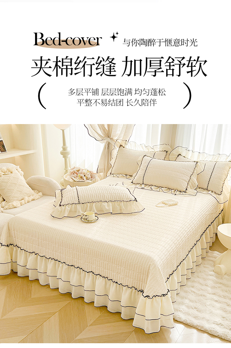 (总)虹星家纺 2025新款雕花牛奶绒床裙三件套-花溪系列,花溪-米黄,花溪-奶油黄