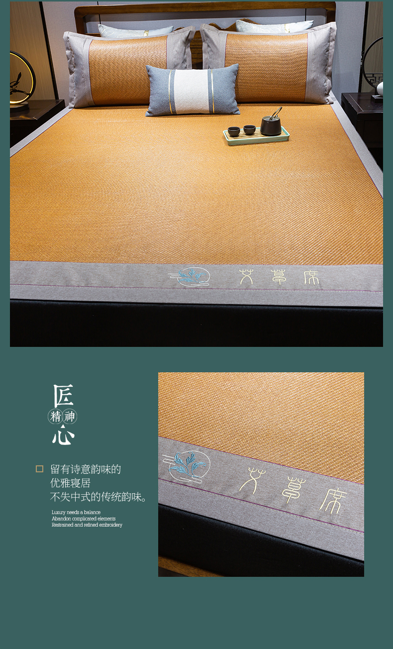 (总)雅诗帛 2025新款新中式天然蔺草席三件套,蔺草席