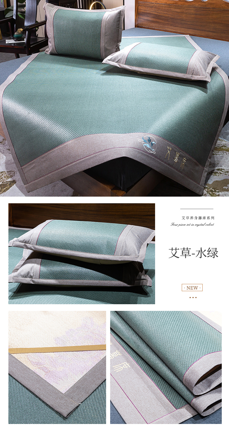 商品名称:(总)雅诗帛 2025新款凉席冰丝席藤席竹席乳胶席抗菌席床笠款凉感席学生宿舍礼品送礼可折叠绣花艾草养生席