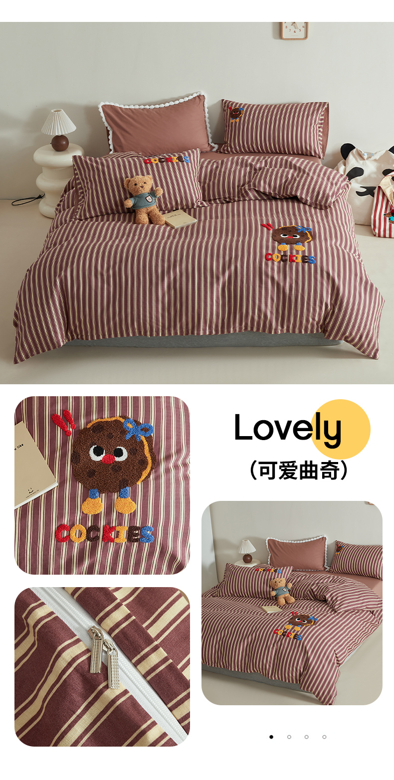商品名称:怡家居 2025新款全棉双层纱可爱卡通毛巾绣四件套 可爱曲奇