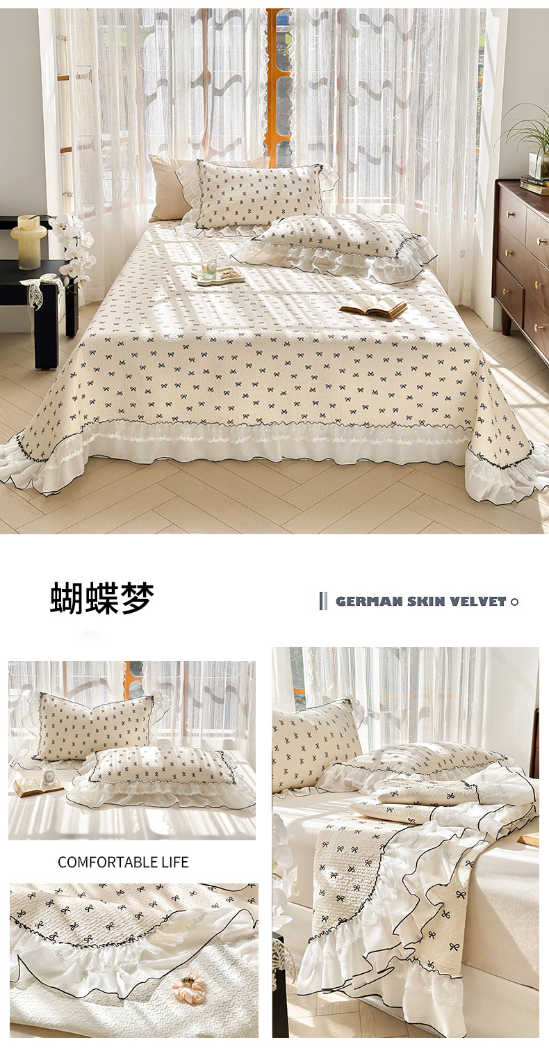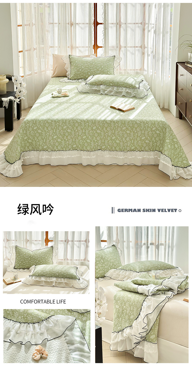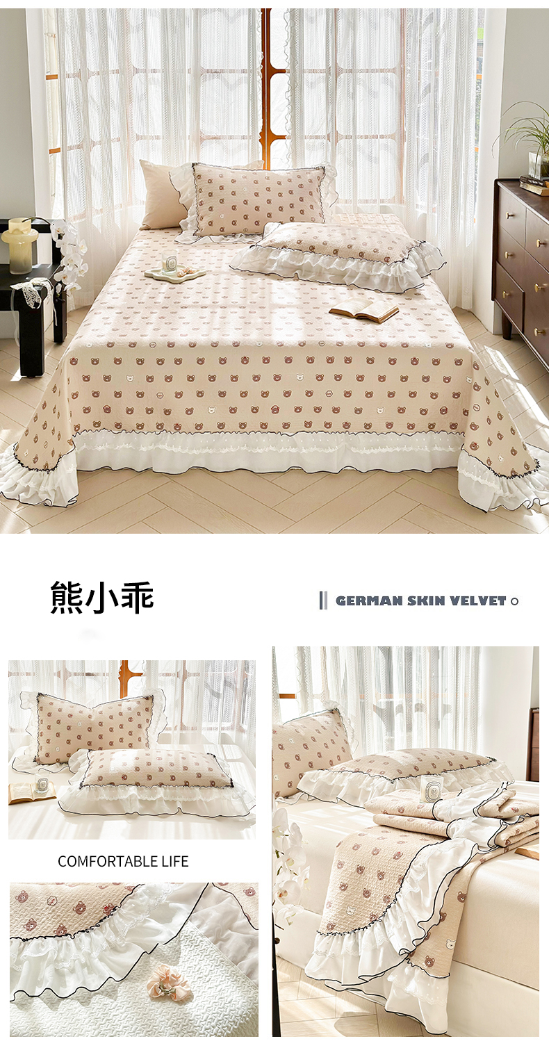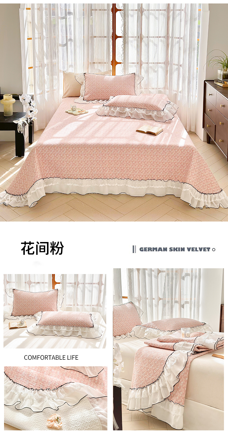 商品名称:(总)金喜 2025新款韩版木棉印花小清新床盖双层蕾丝边夹棉床盖-小清新系列