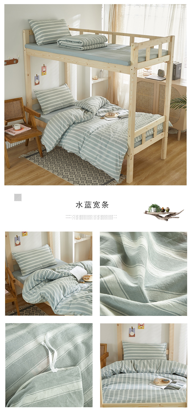 商品名称:水洗的故事 2025新款开学季色织水洗棉学生宿舍三件套 乔南灰