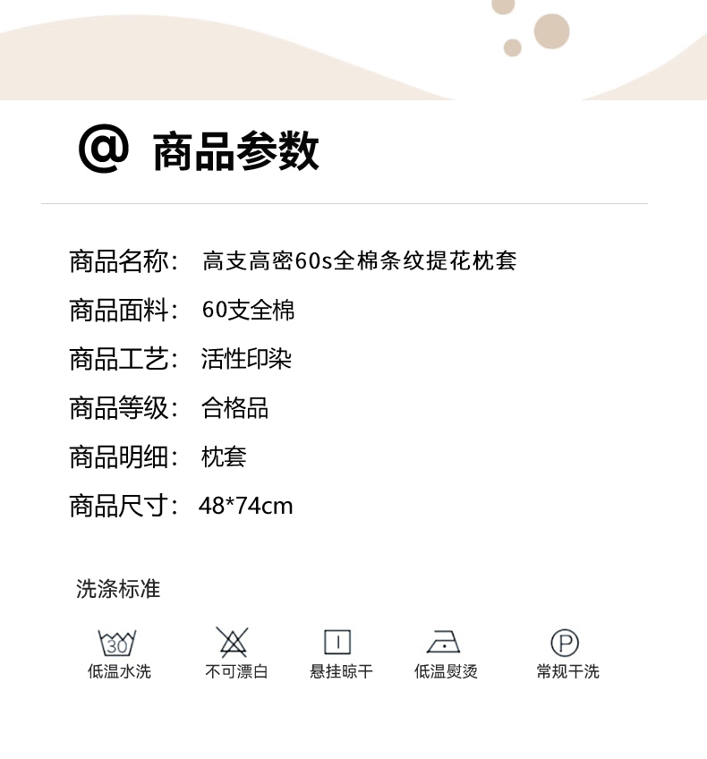 商品名称:眠博士 2025新款高支高密60支全棉条纹提花单枕套 枕套-提花雅白
