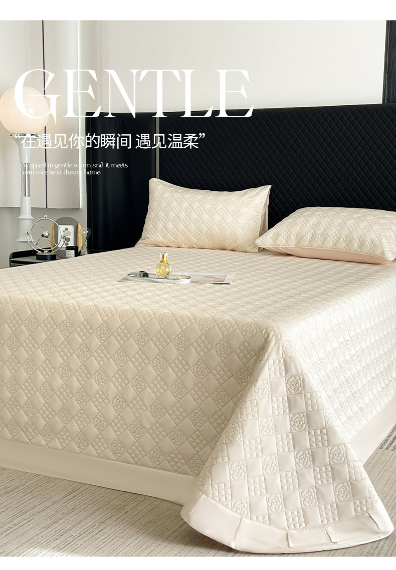 商品名称:2025新款A类100支长绒棉夹棉床盖三件套全棉纯棉加厚绗绣床单四季款床上用品 奶玉