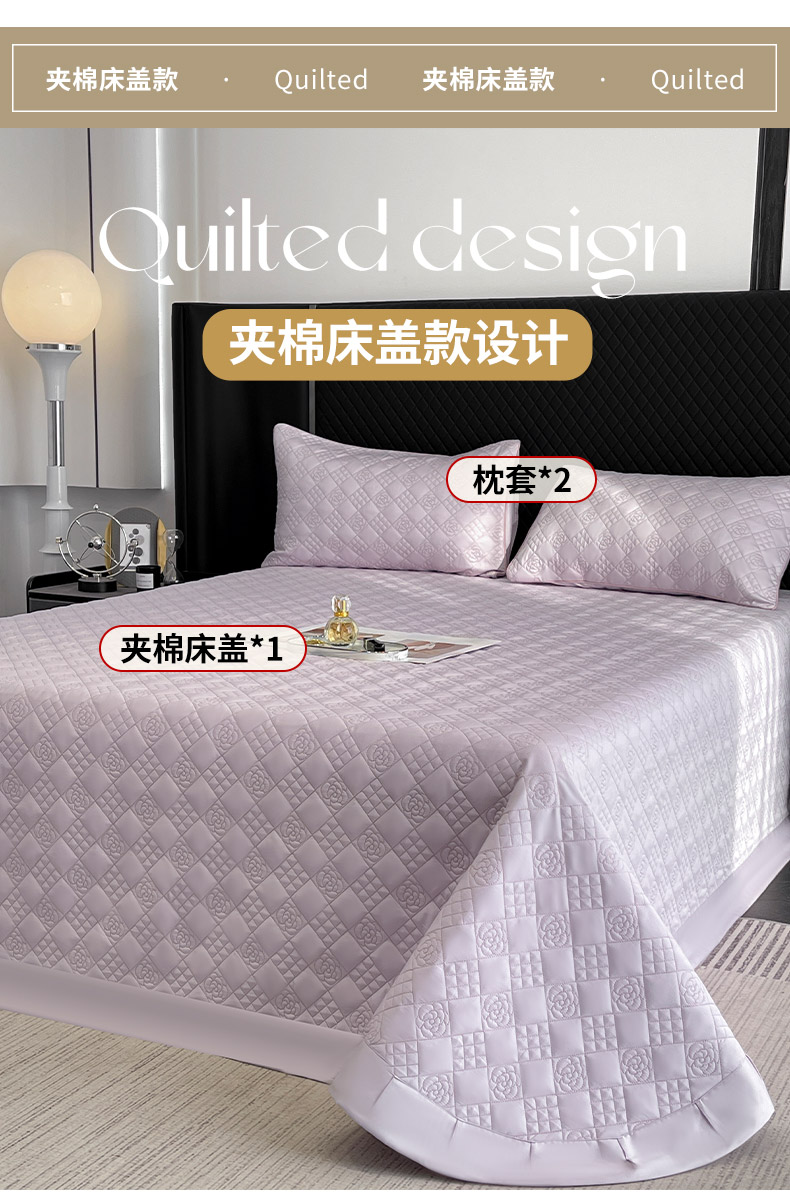 商品名称:(总)2025轻奢风A类长绒棉夹棉床盖床笠三件套纯色绗绣四季高级感纯色全棉纯棉床上用品