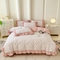 金米诺 新款韩版花边水洗棉泡泡纱四件套公主条四件套 褶皱-浅粉,褶皱-浅粉
