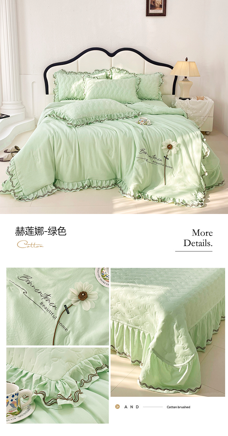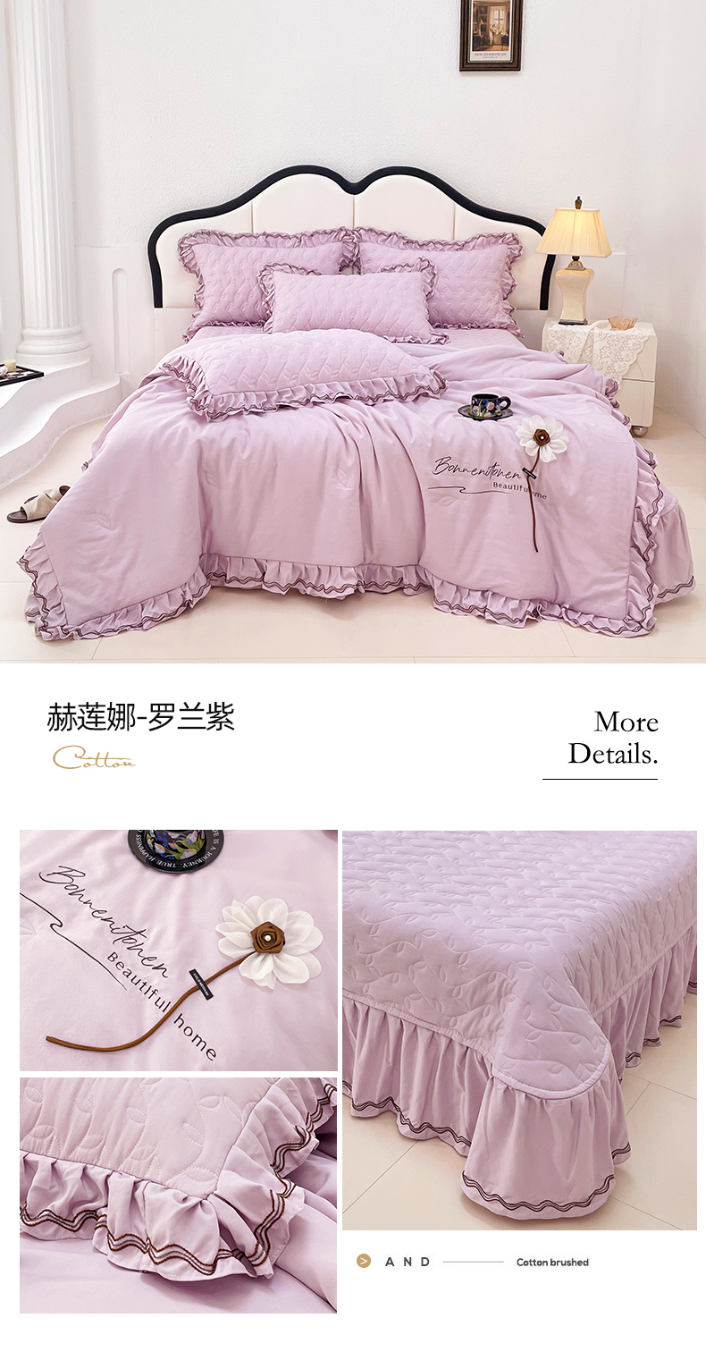 (总)金绣美居 2025春夏韩版被套床盖款多功能夏被四件套-赫莲娜(控价不低于149),海葵紫,米白,浅粉,天空蓝,新绿