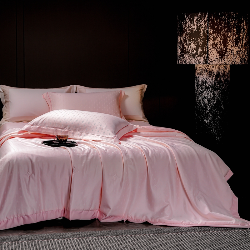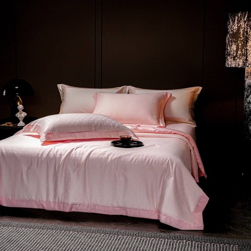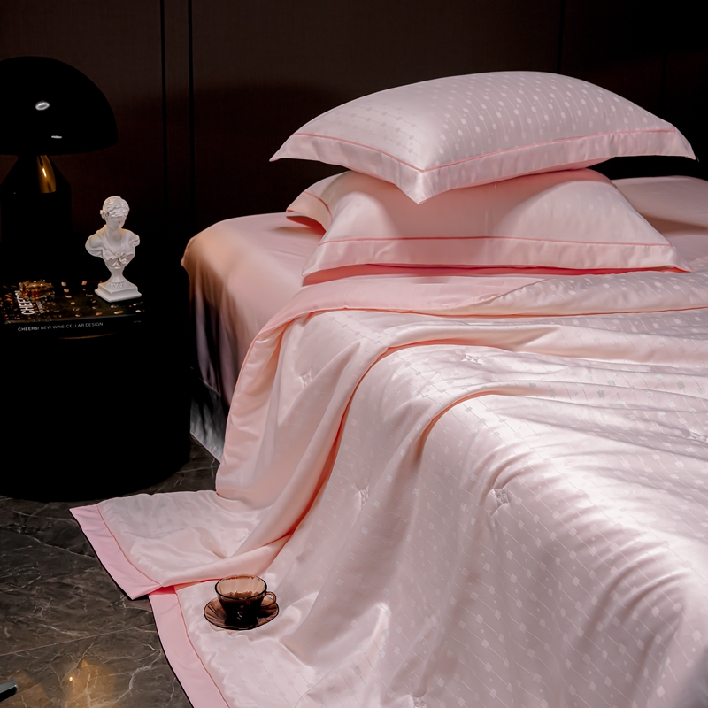 商品名称:2025新款格利亚天丝提花夏被四件套 格子-粉