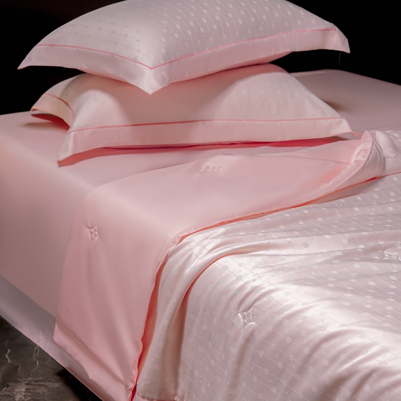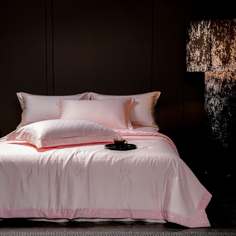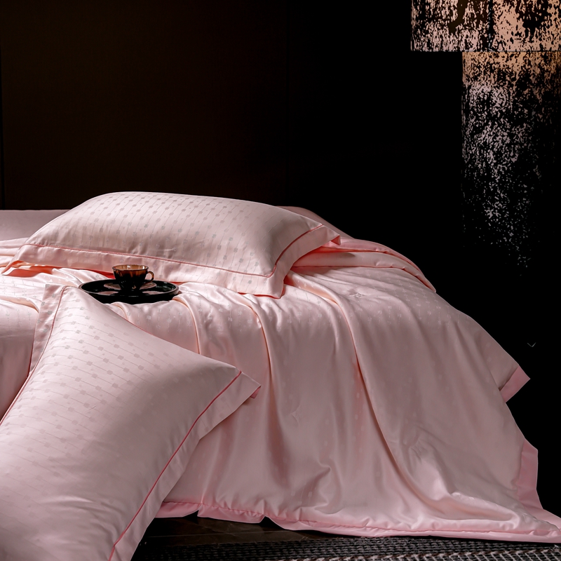 2025新款格利亚天丝提花夏被四件套 格子-粉