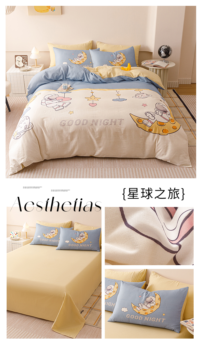 商品名称:2025新款设计师专版全棉双层纱四件套 探索星球