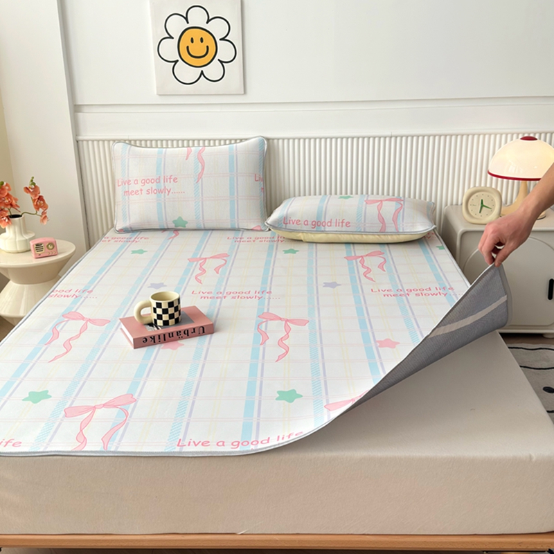柏薇 2025新款三明治网眼印花凉席套件 蝴蝶结