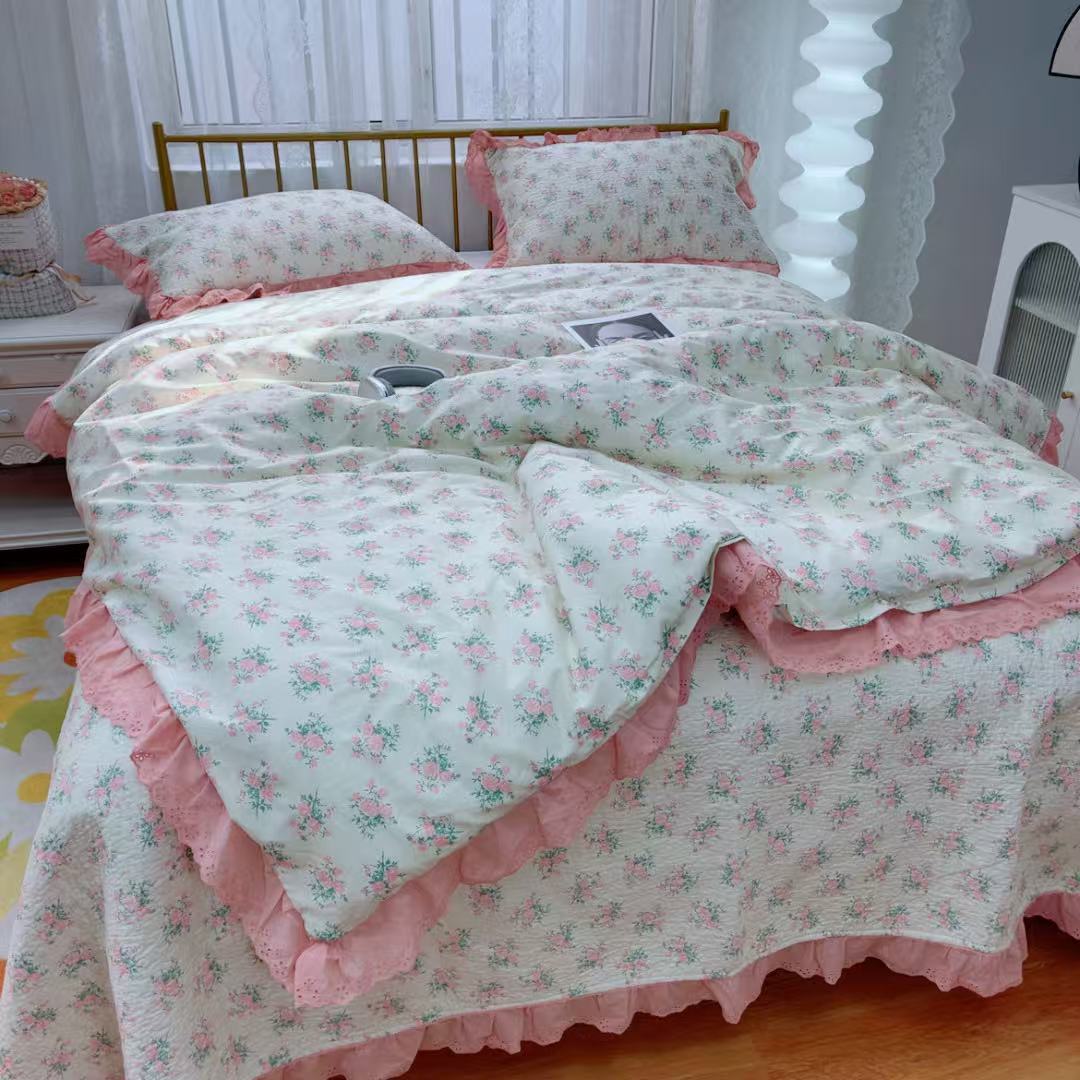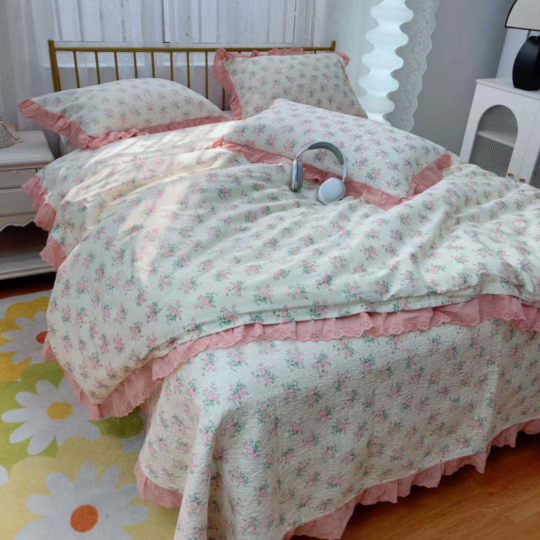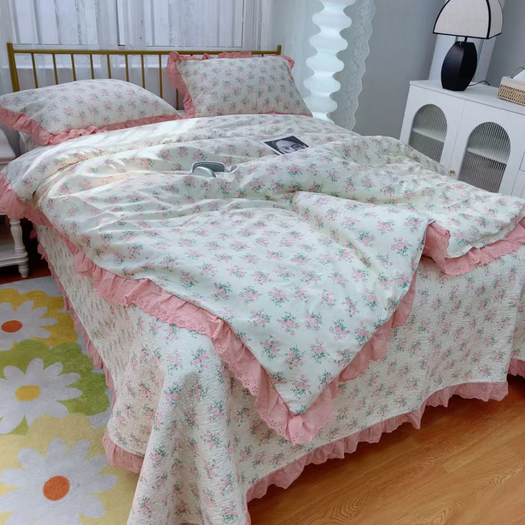商品名称:暖居 2025春夏款高温砂洗棉花床盖三件套被套四件套同款纯棉夏被空调被四季 茉莉