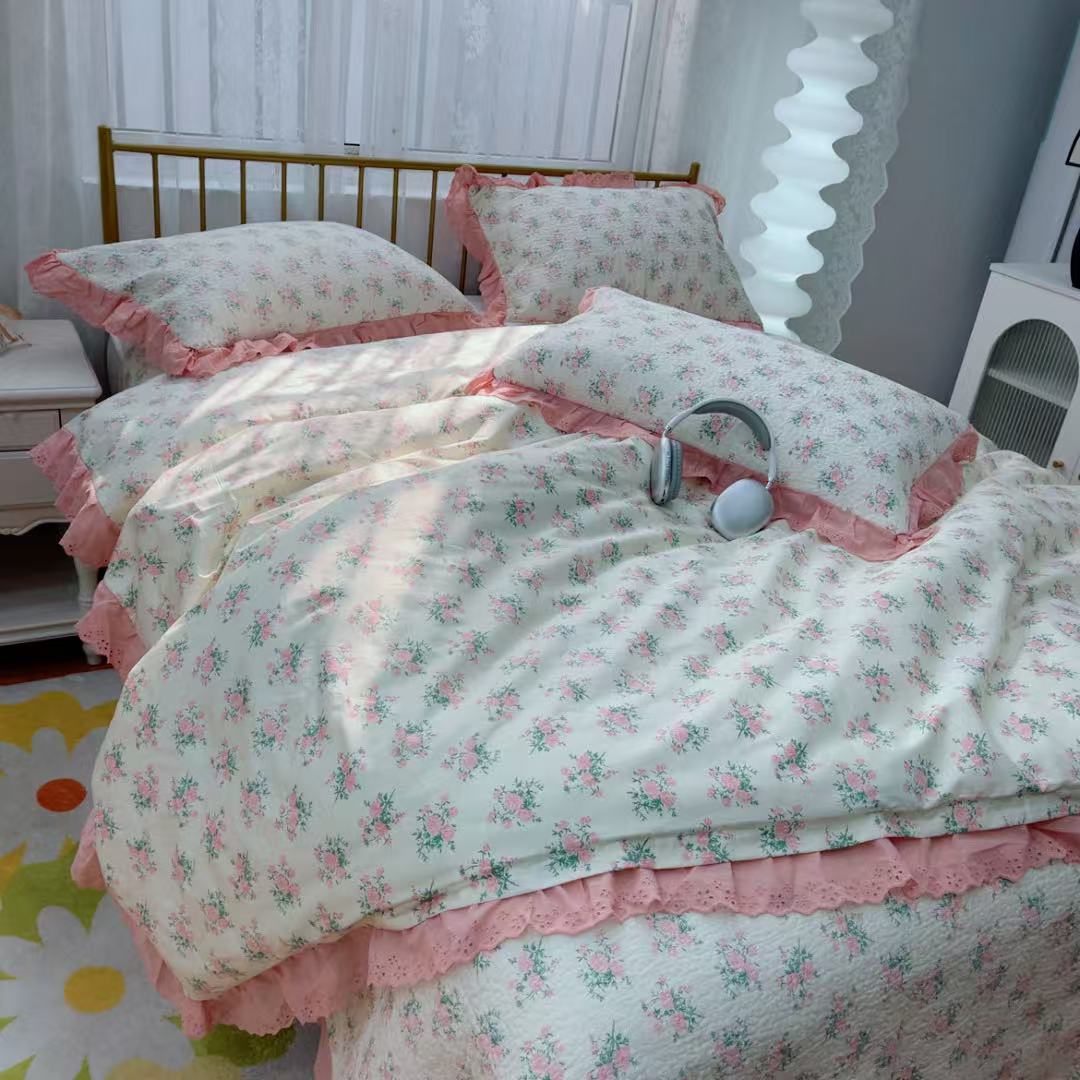 (总)暖居 2026新款支持定制法式花边纯棉榻榻米四件套全棉大炕盖三件套四季通用,白山茶,海盐兔,赫本白,晨暮间,灰格蝴蝶结,奶油点点,波点紫,豹纹KT,南法假日,浅咖,时尚小香,碎花兔蓝,旺仔紫色,小美好,小甜橘,小香格子,雅格,中国美