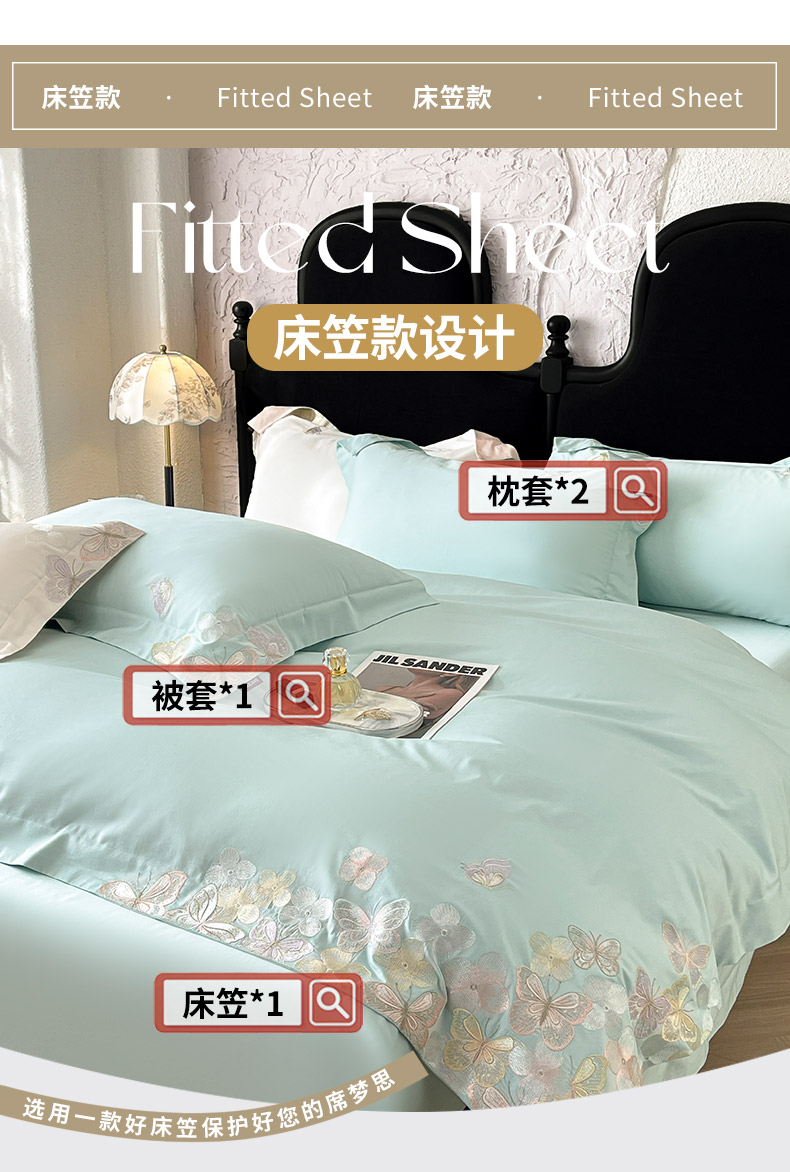 (总)2025新款轻奢风A类100支长绒棉四件套全棉纯棉重工刺绣床单床笠夹棉床笠床盖款高端床上用品-星慕,白粉,白蓝,茶绿,黛紫,慕蓝,奶玉,颜粉