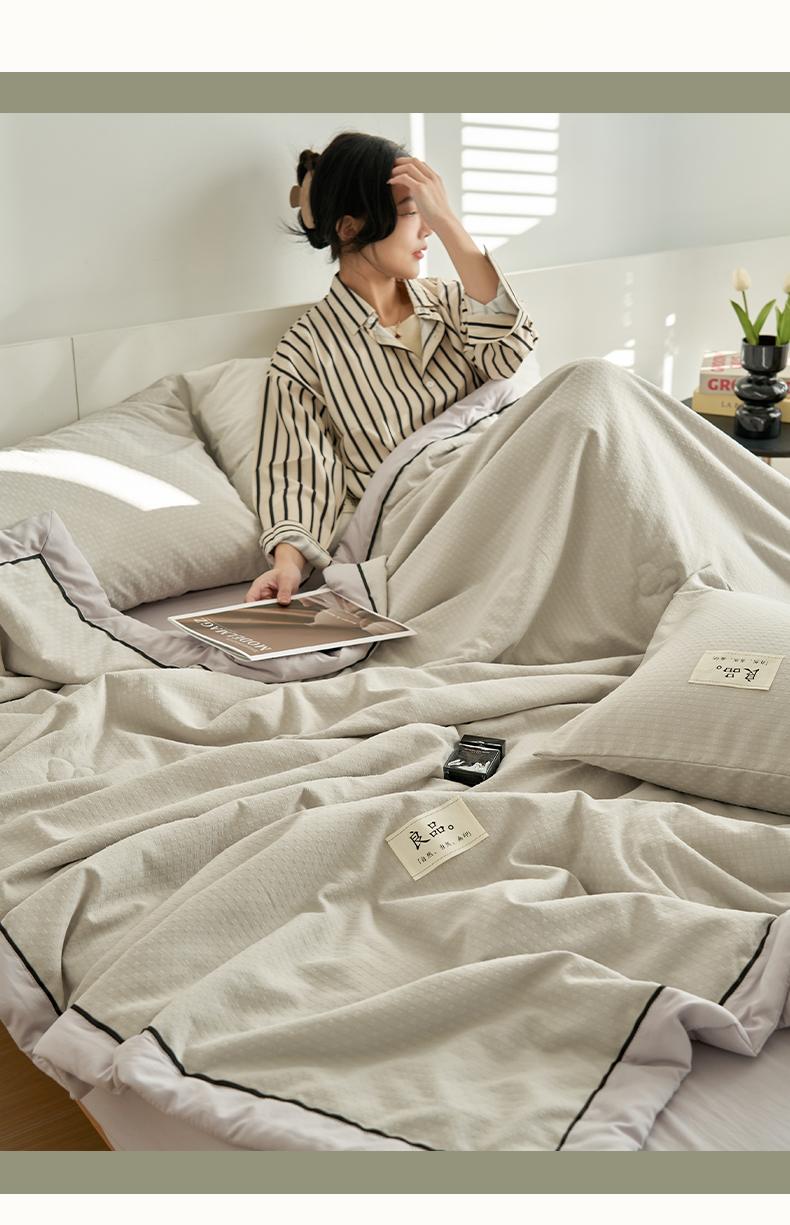(总)子由家居 2025新款家居雪尼尔植绒大豆被,雪尼尔-米白,雪尼尔-浅灰