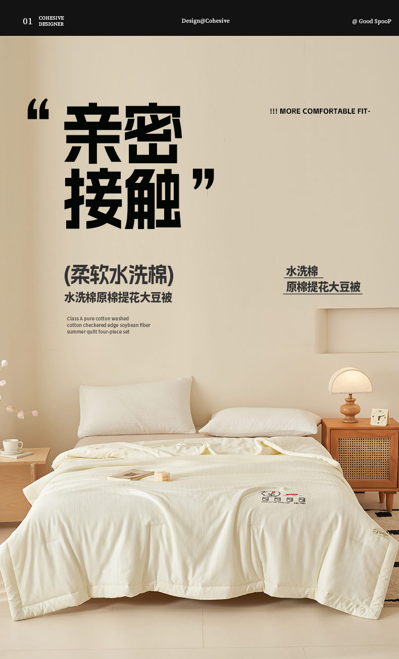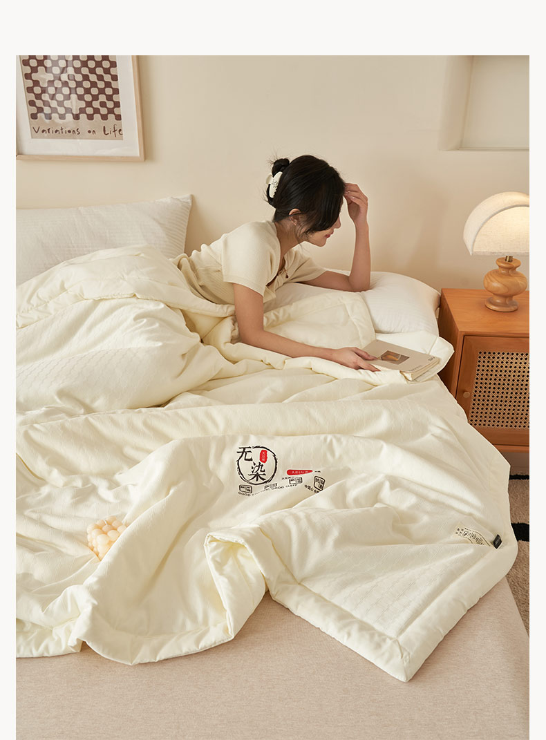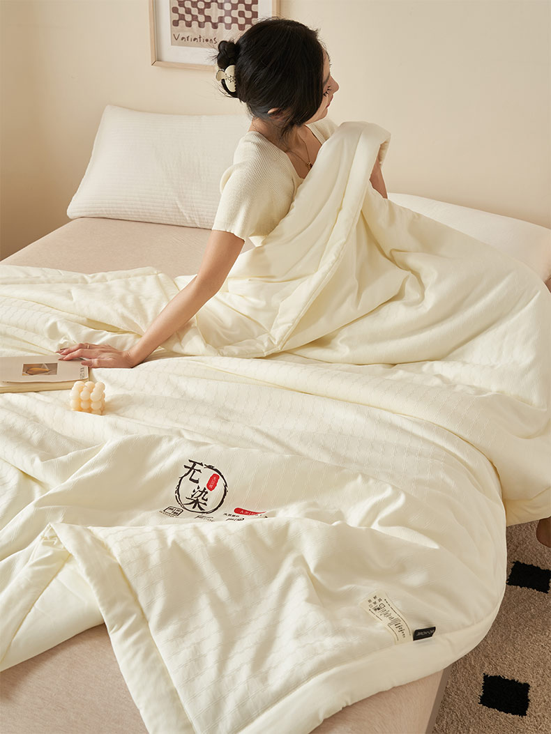 商品名称:子由家居 2025新款水洗棉原棉提花大豆夏被被子被芯 原棉-本白