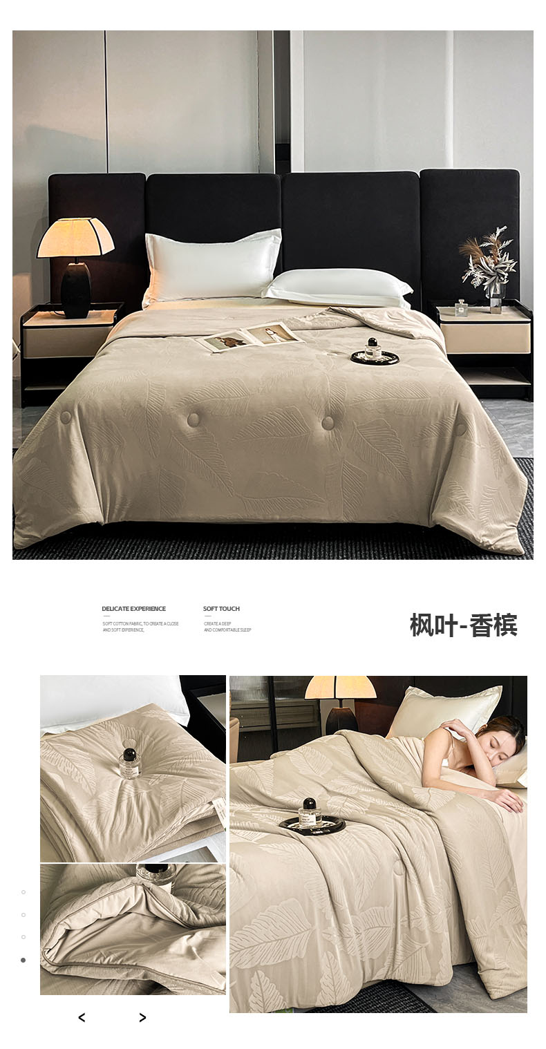 子由家居 2025新款凉感丝浮雕提花大豆夏被被子被芯 曲线纹-天蓝