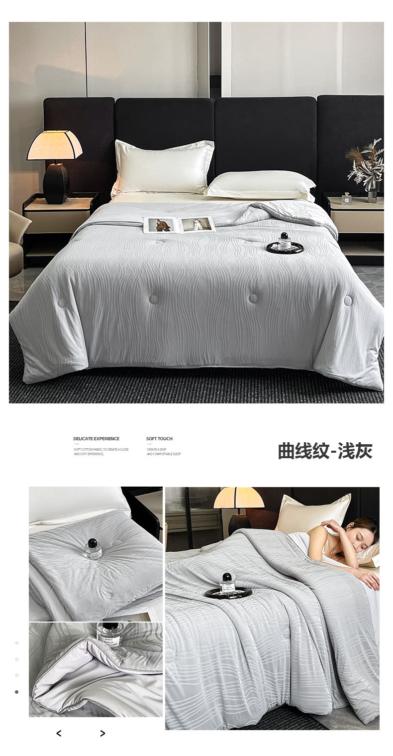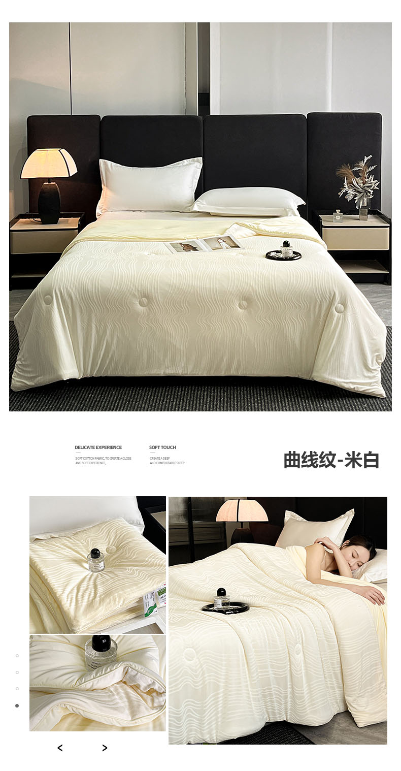 商品名称:子由家居 2025新款凉感丝浮雕提花大豆夏被被子被芯 曲线纹-天蓝