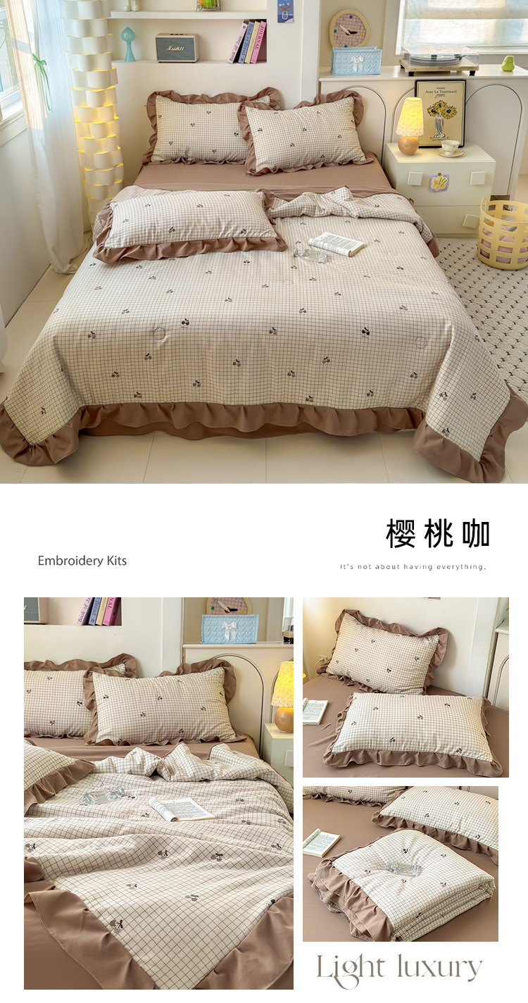 商品名称:德比尔斯 2025新款针织双层纱单夏被夏被四件套 樱桃咖