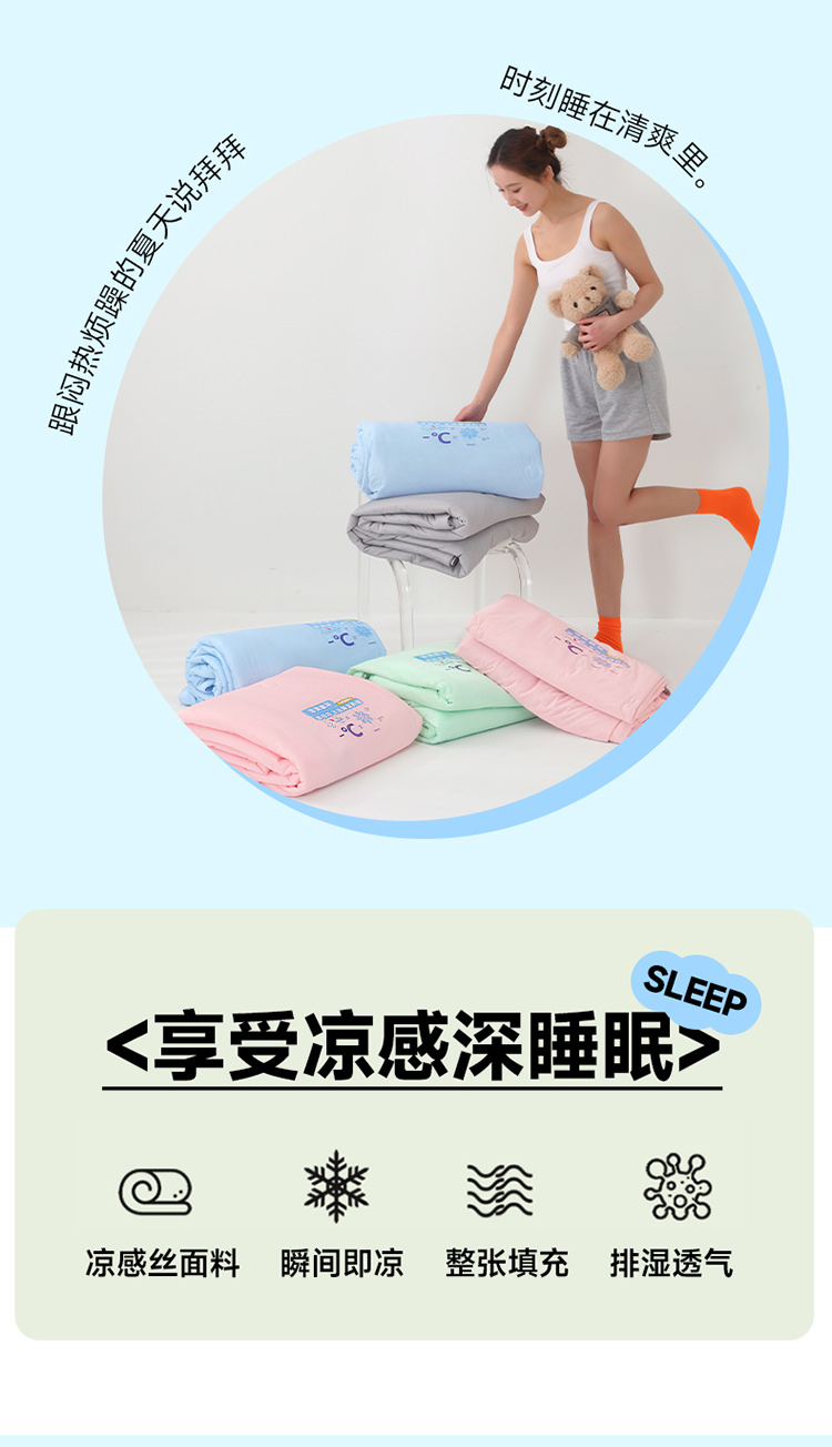 商品名称:优布加2025新款亲肤舒适凉感丝夏被夏凉被空调被 冰凉蓝色