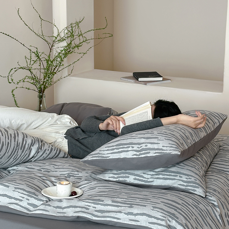 (总)梦享生活家居 2025新款全棉肌理纹提花四件套,灰黑色