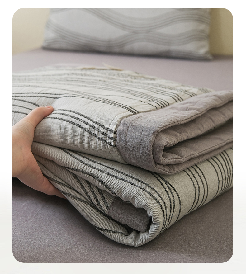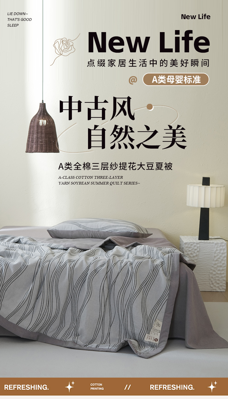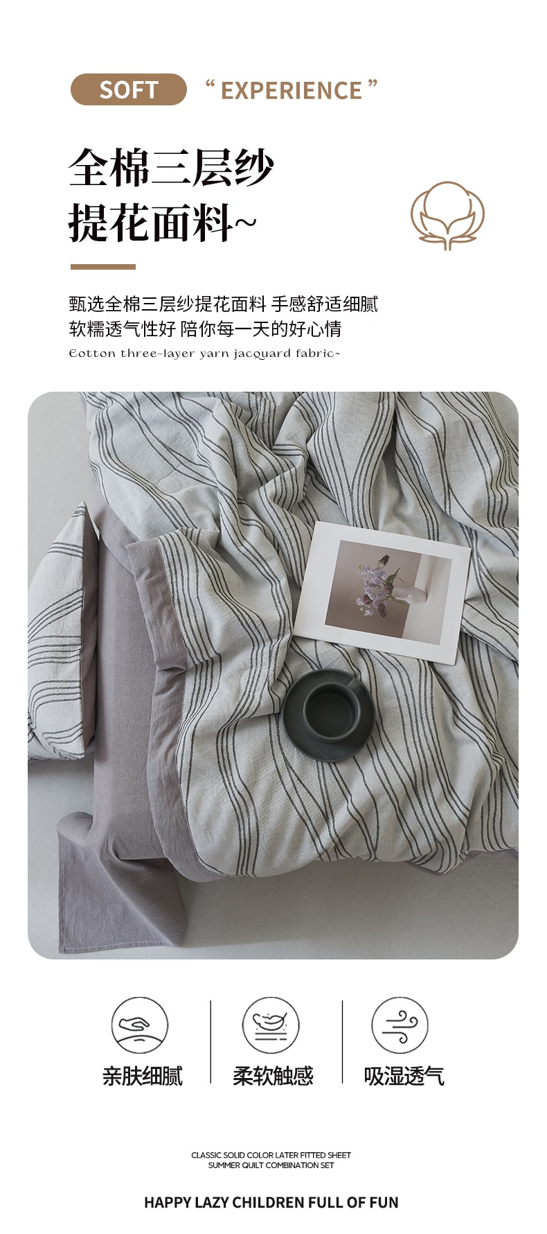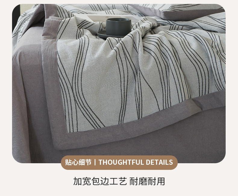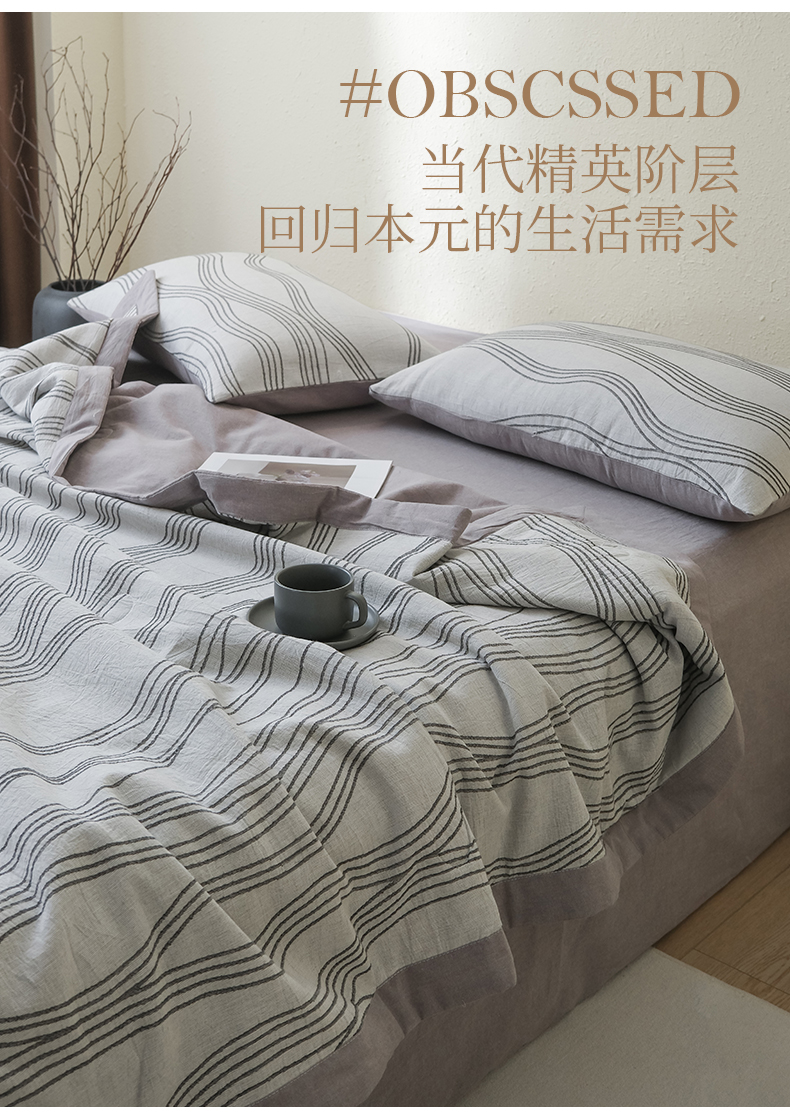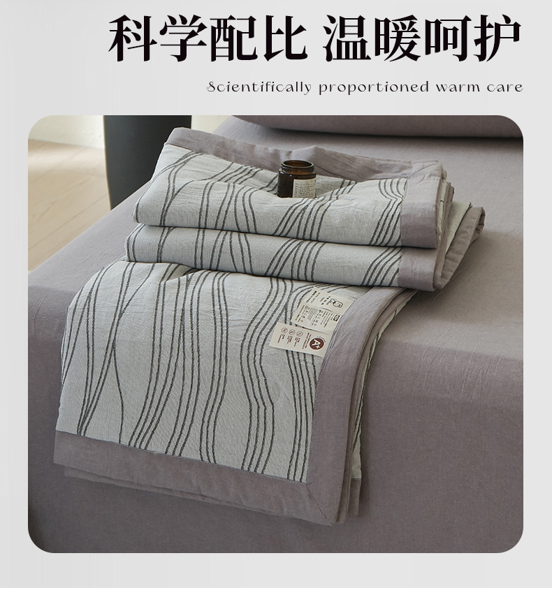 • 91家纺网 家纺一手货源 找家纺 优被业 2025新款A类全棉中古风全棉三层纱提花大豆夏被 流年-灰