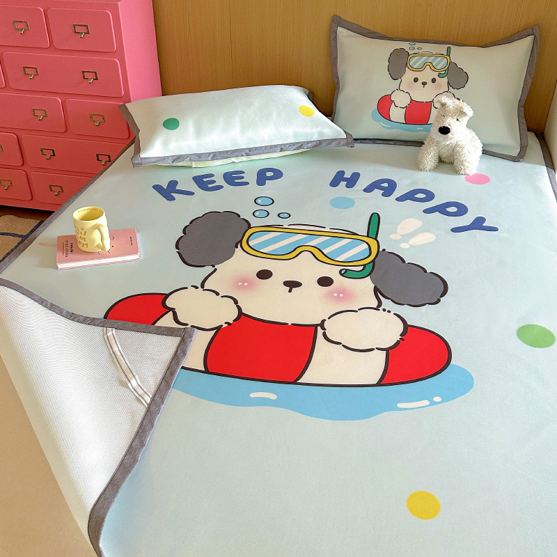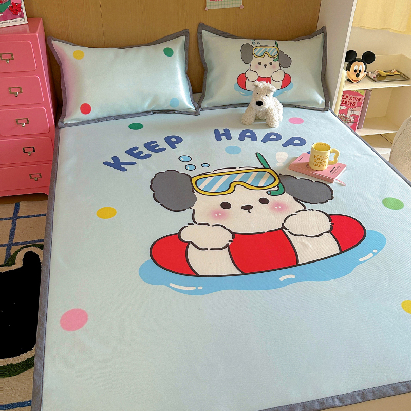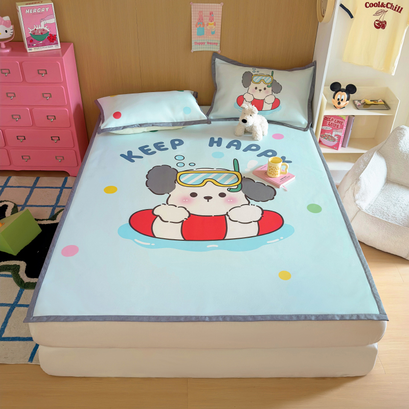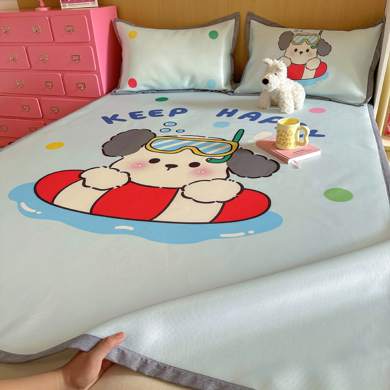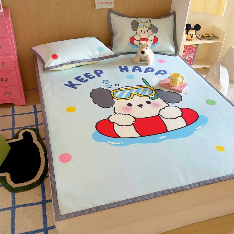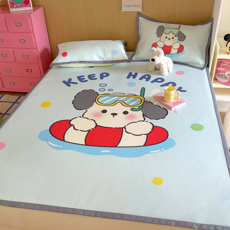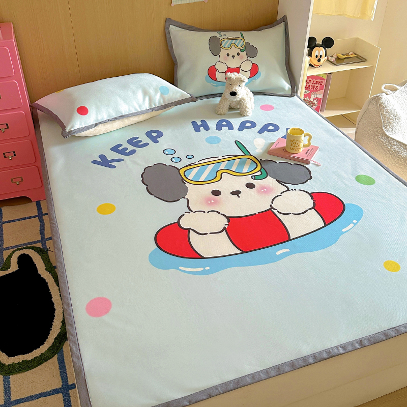 昊川家纺 2025新款大版数码印花碳光冰丝席 游泳狗