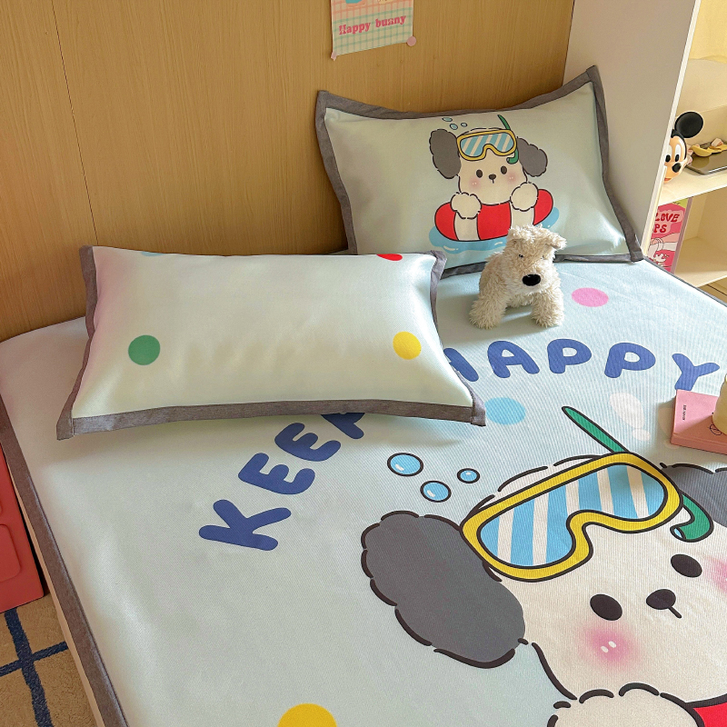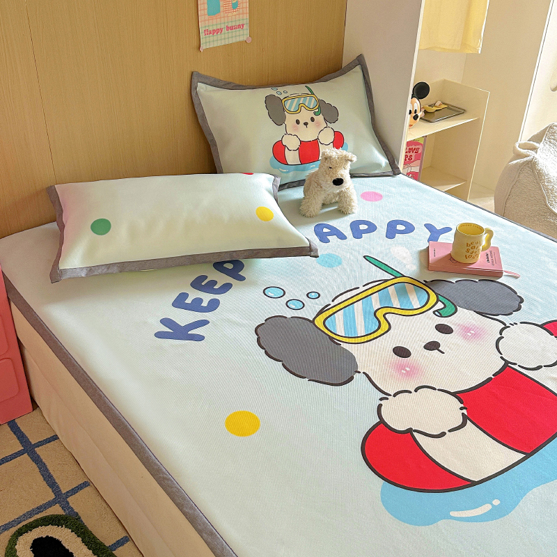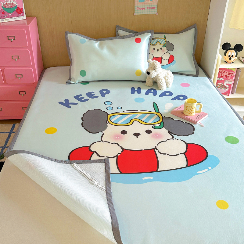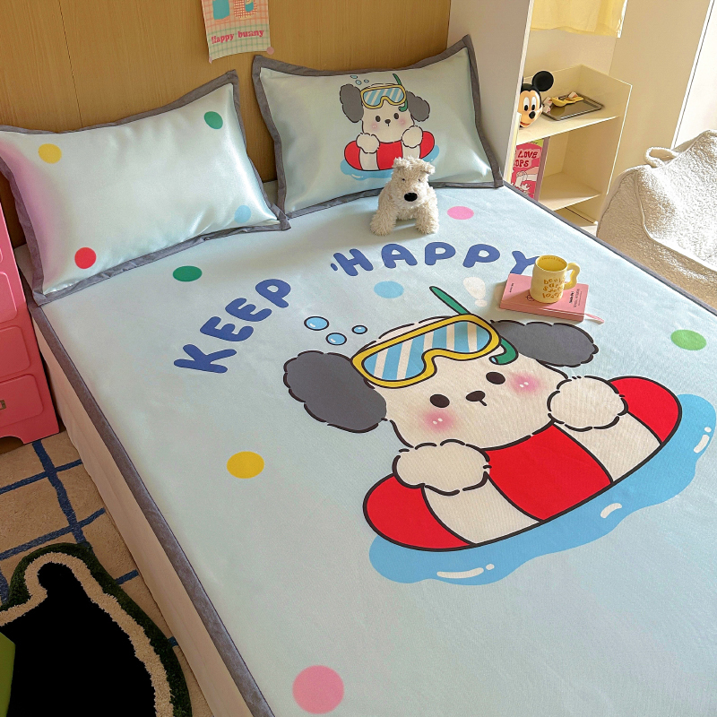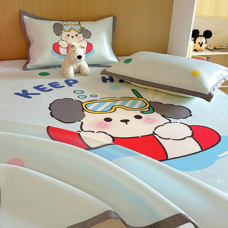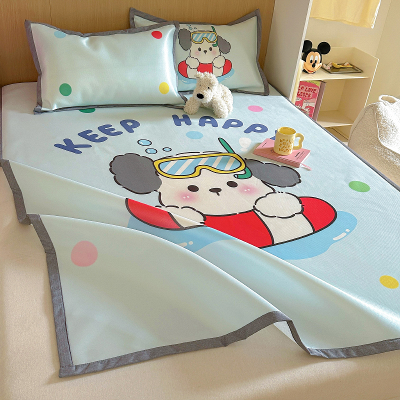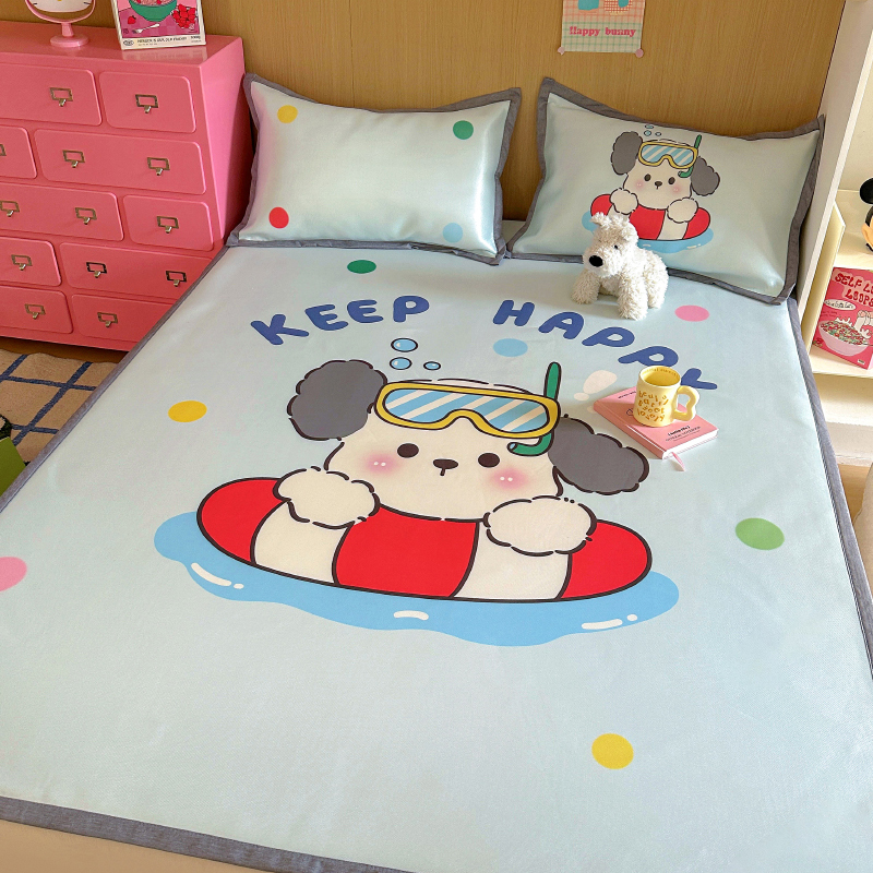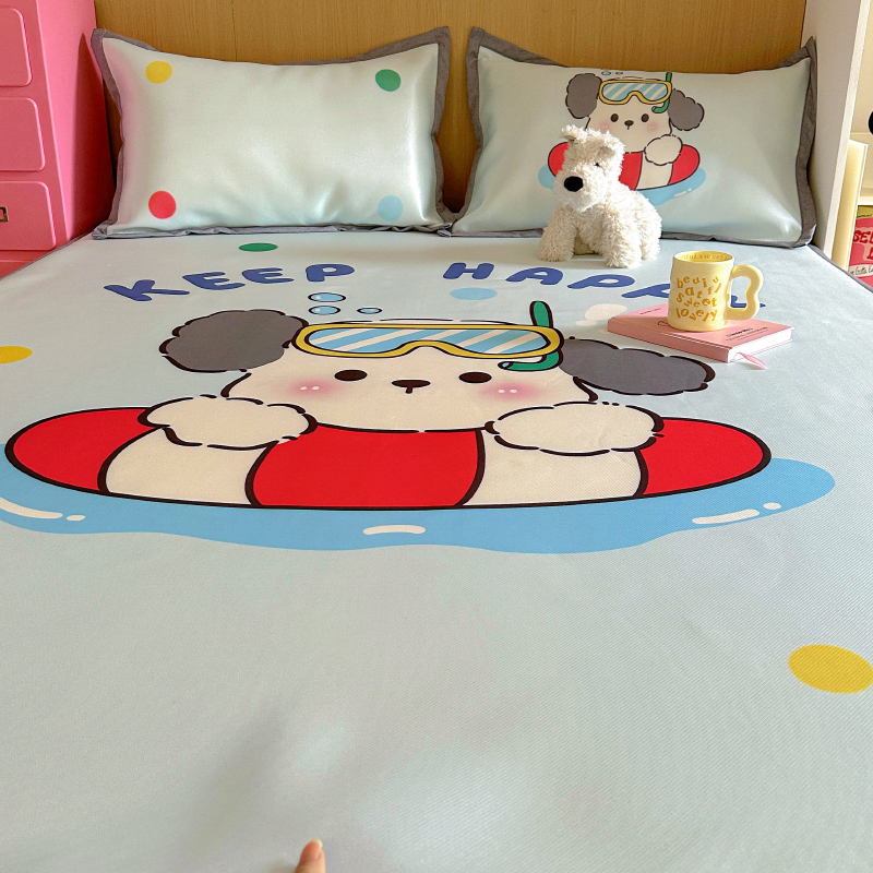 昊川家纺 2025新款大版数码印花碳光冰丝席 游泳狗