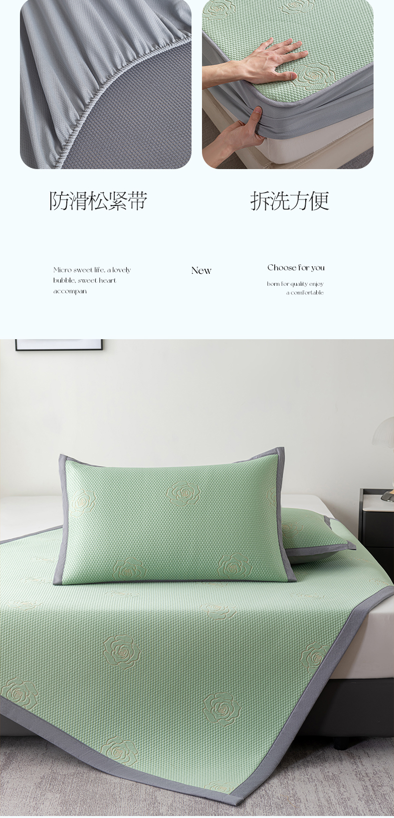 商品名称:2025新款山茶花系列冰豆豆凉席 山茶花床席款-绿