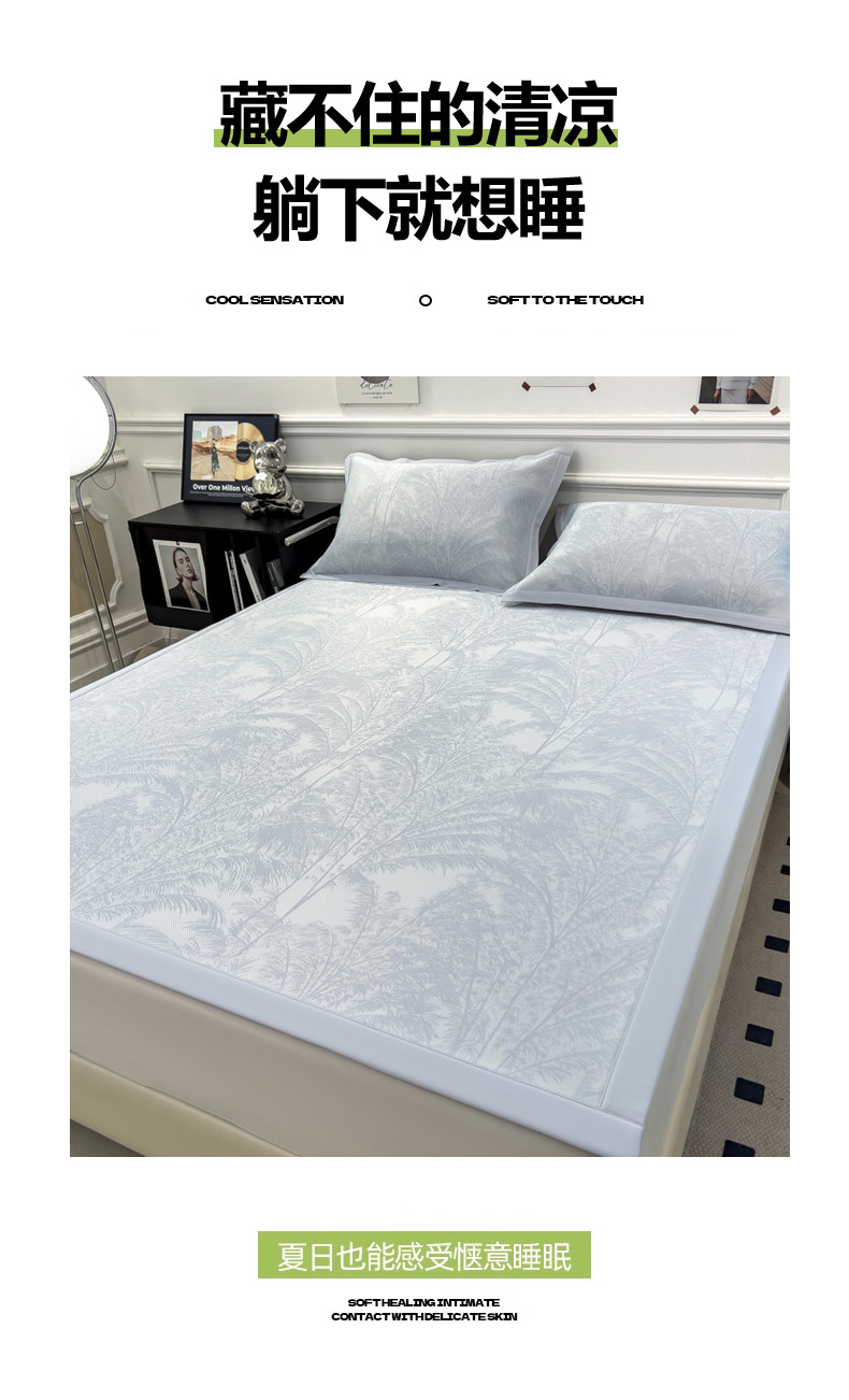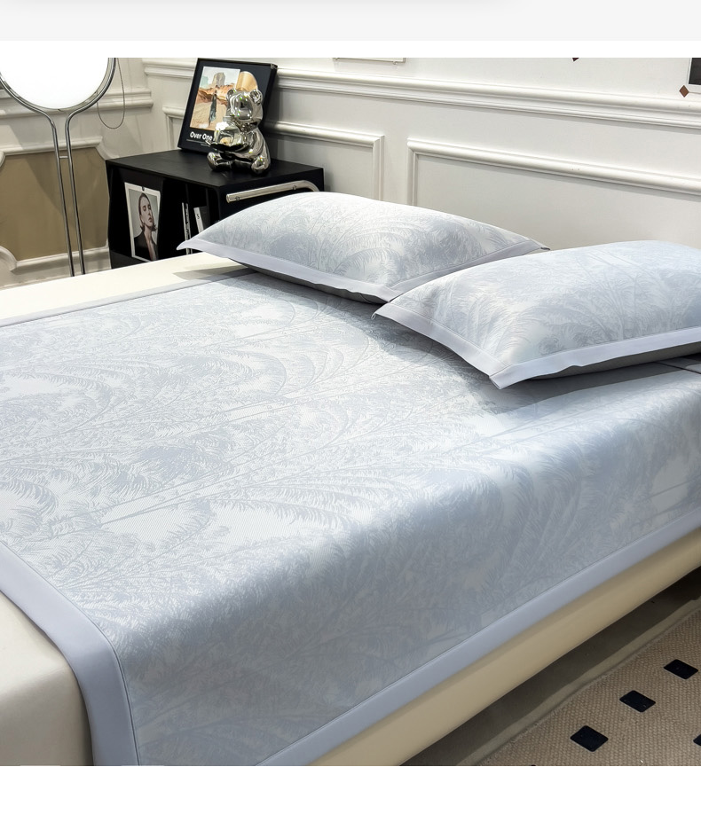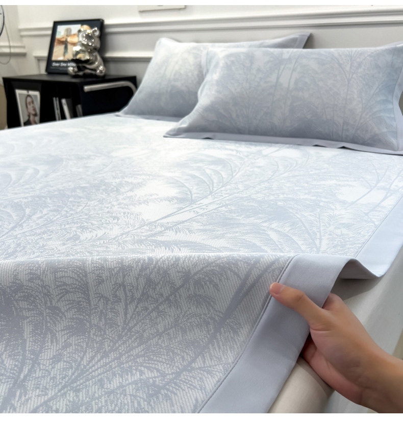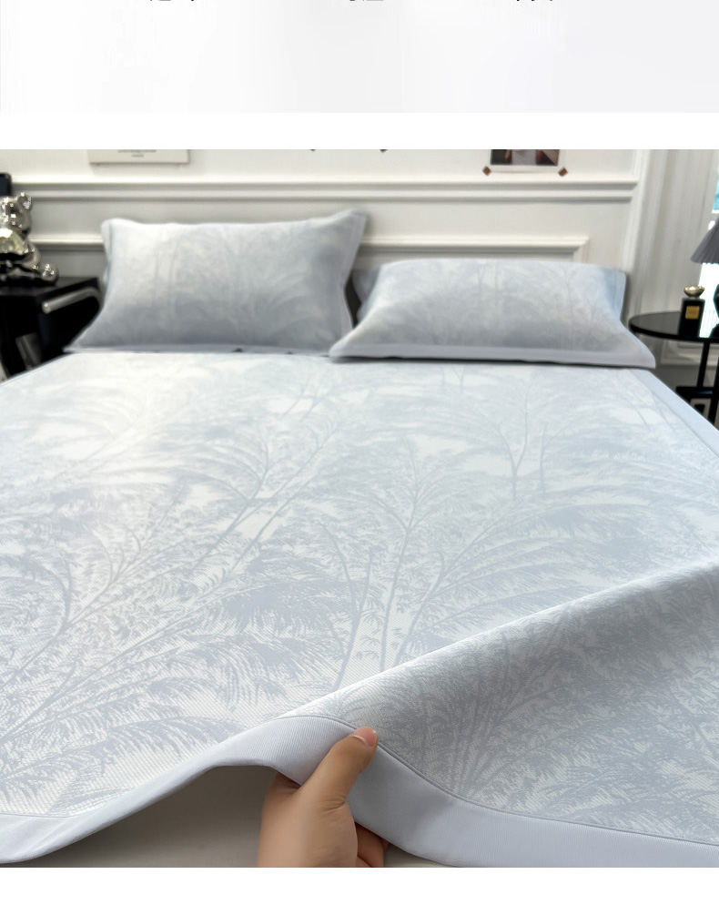 2025新款牛奶丝提花凉感凉席系列床席款 森林奇境蓝床席款