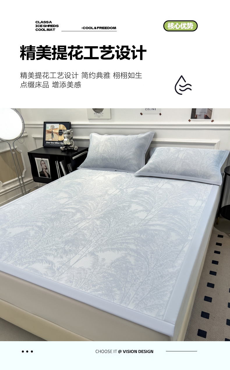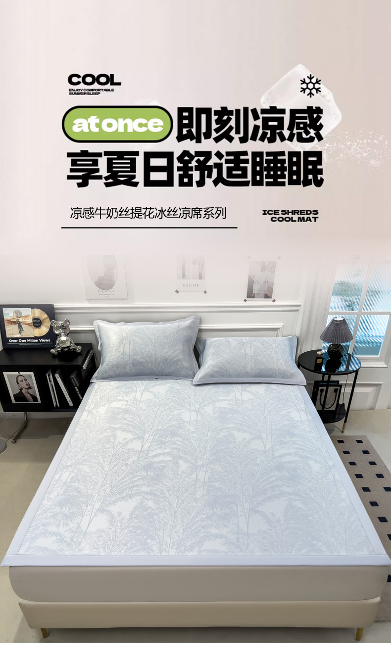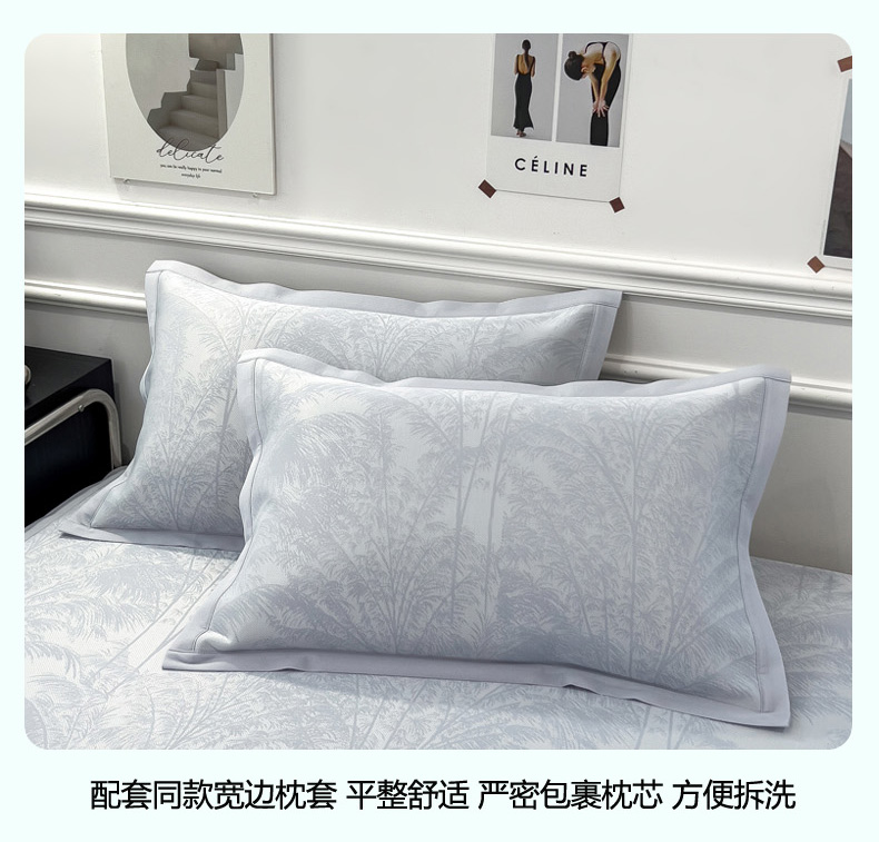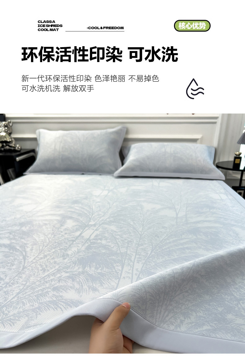 2025新款牛奶丝提花凉感凉席系列床席款 森林奇境蓝床席款