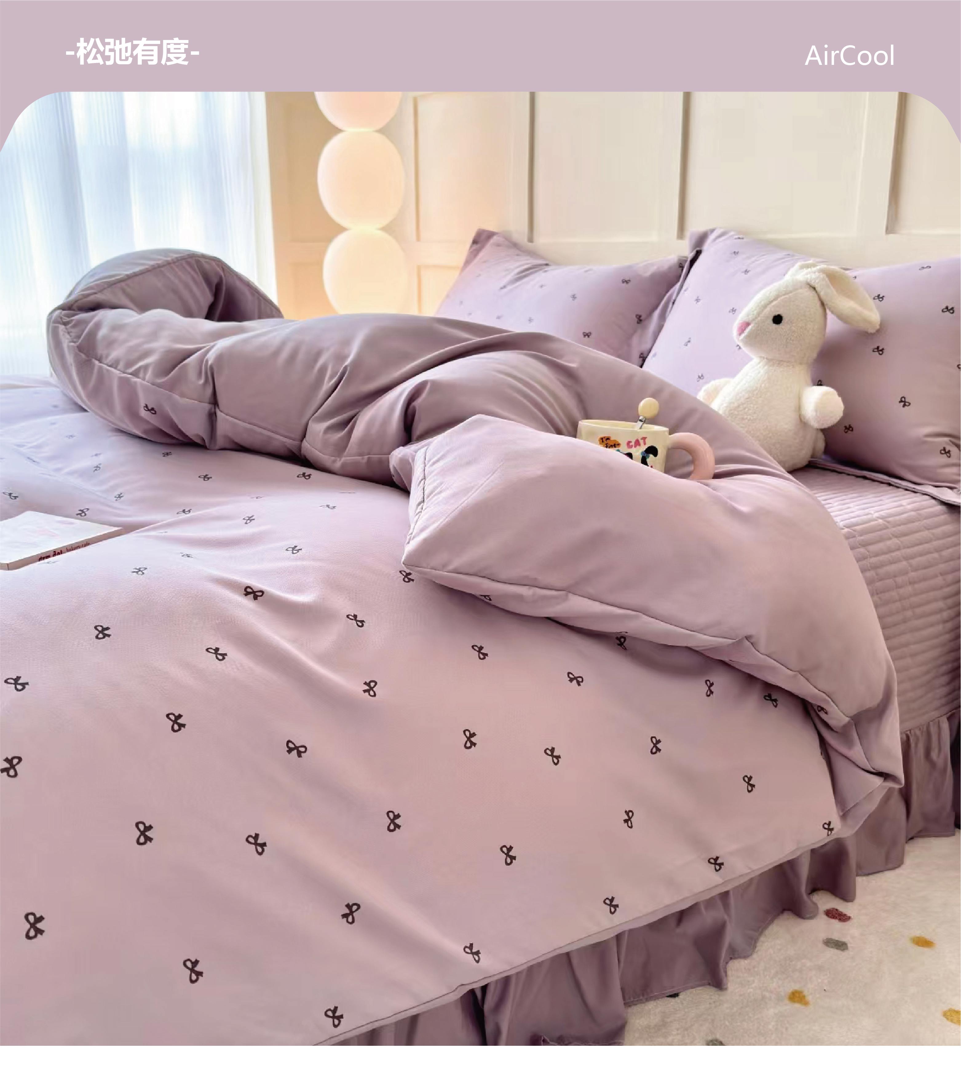 人人爱 2025新款有氧针织棉双层纱床盖款四件套 花语紫