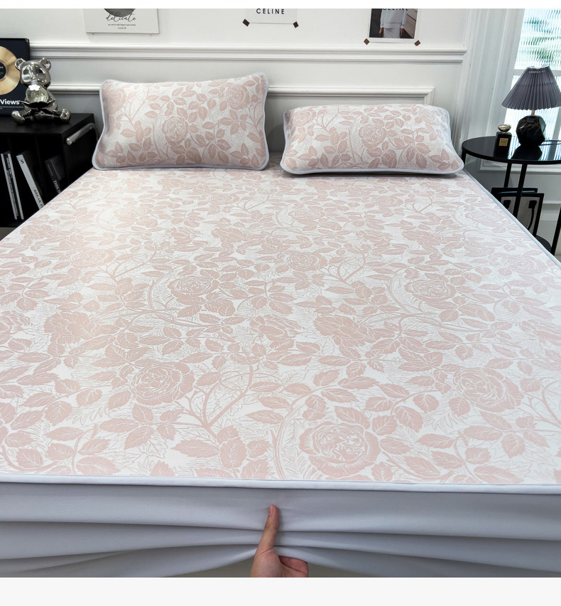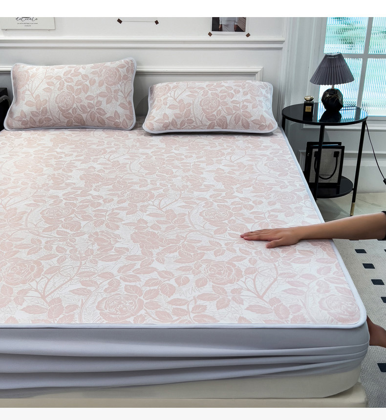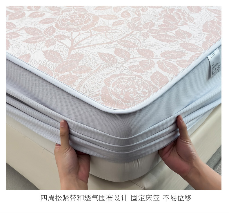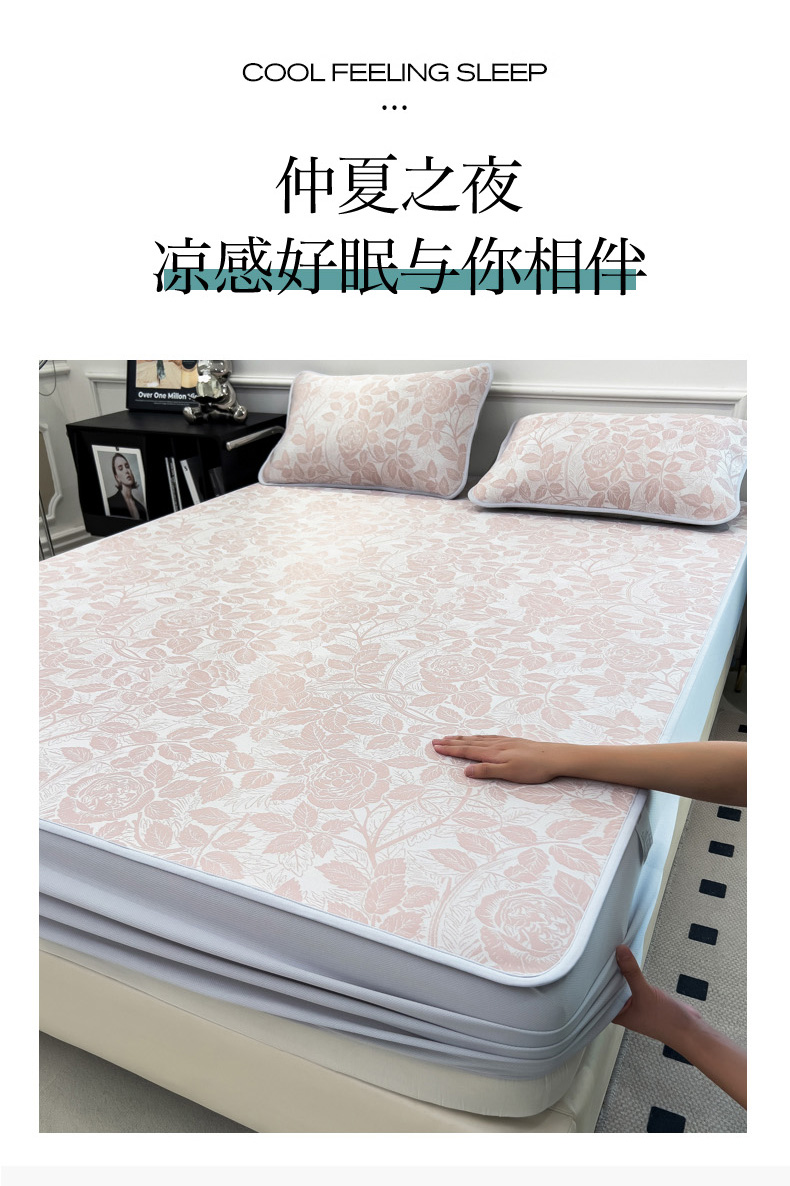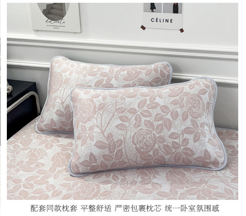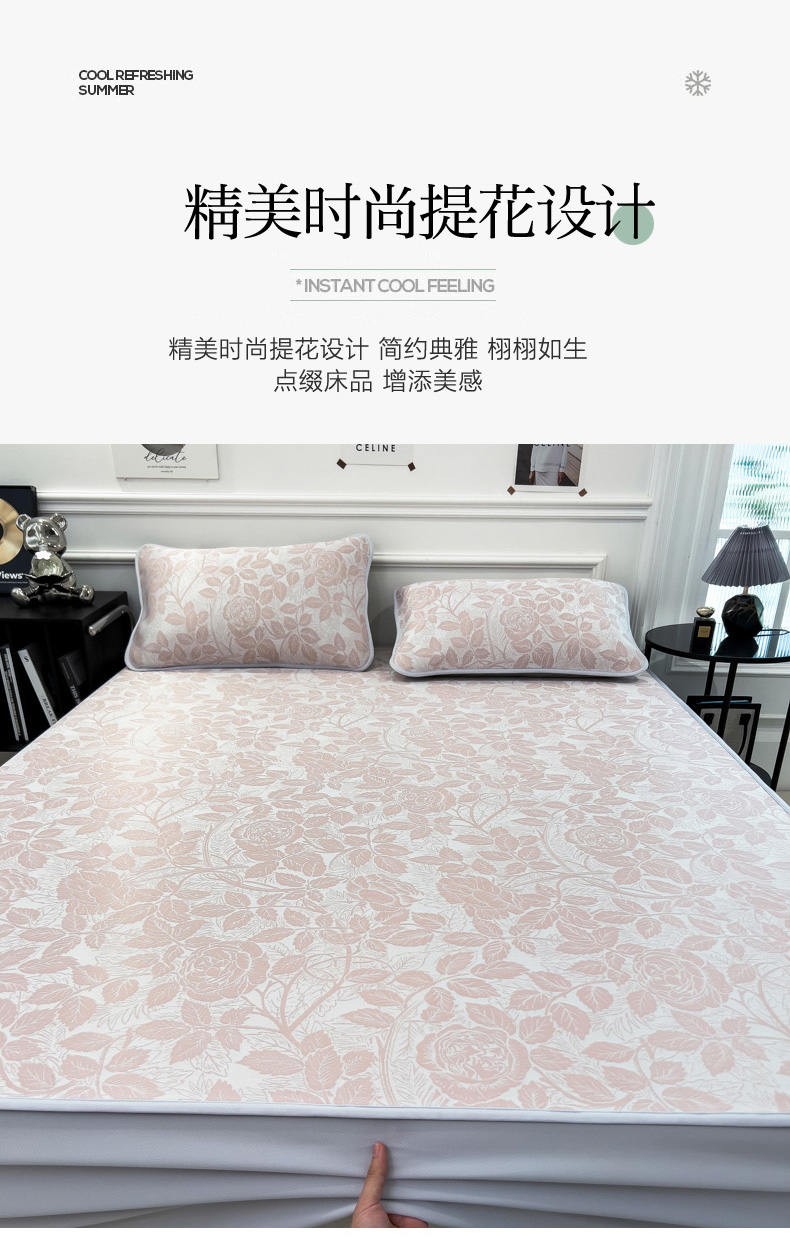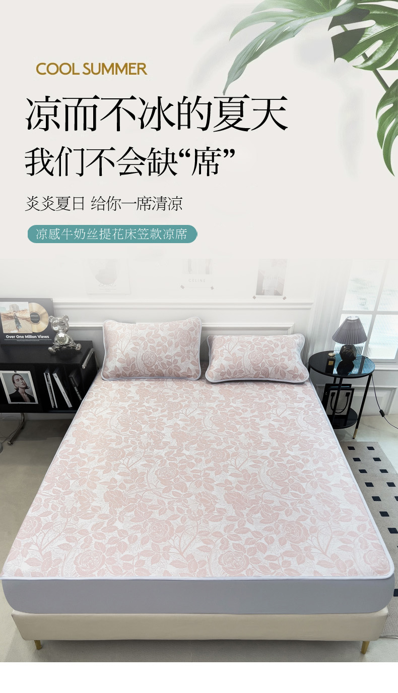 商品名称:2025新款牛奶丝提花凉感凉席系列床笠款 情意浓粉床笠款