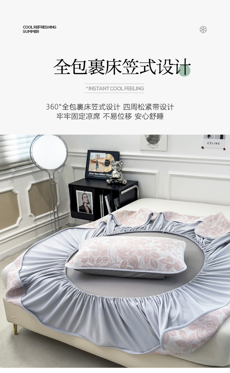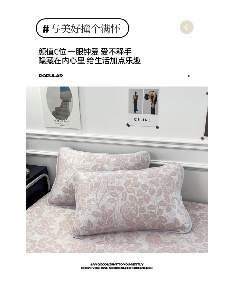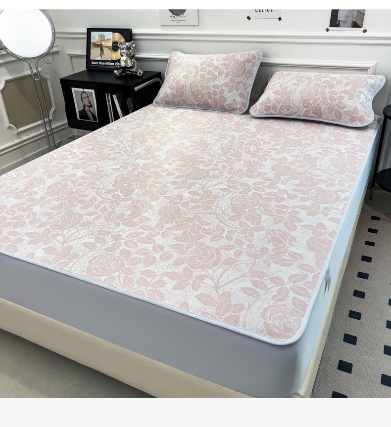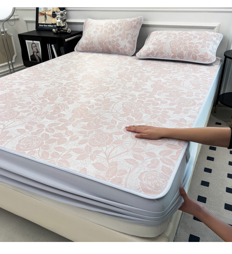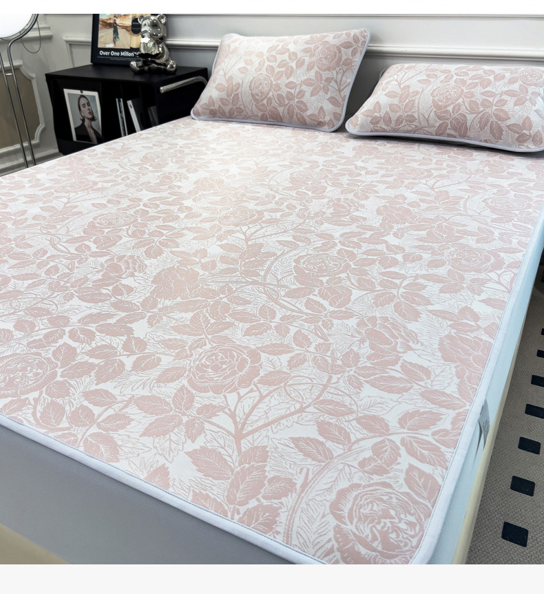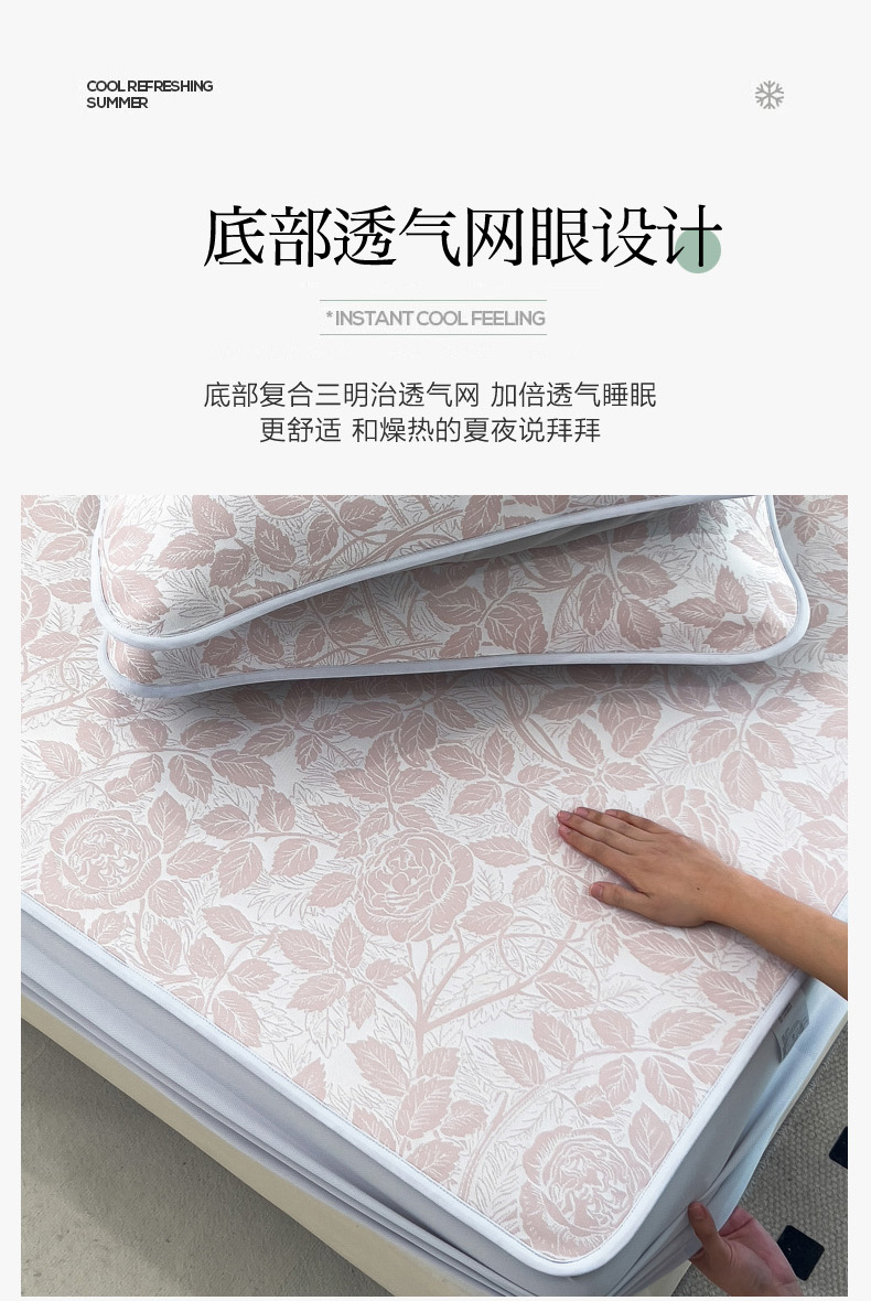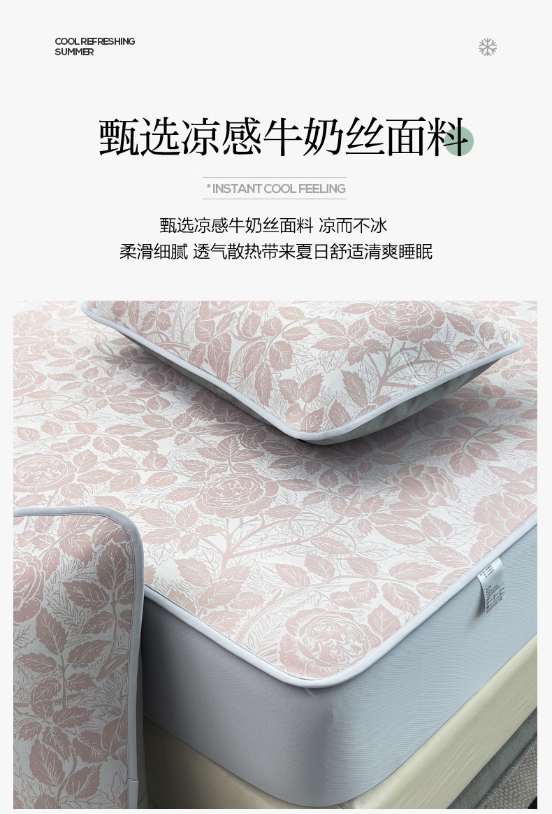 商品名称:2025新款牛奶丝提花凉感凉席系列床笠款 情意浓粉床笠款